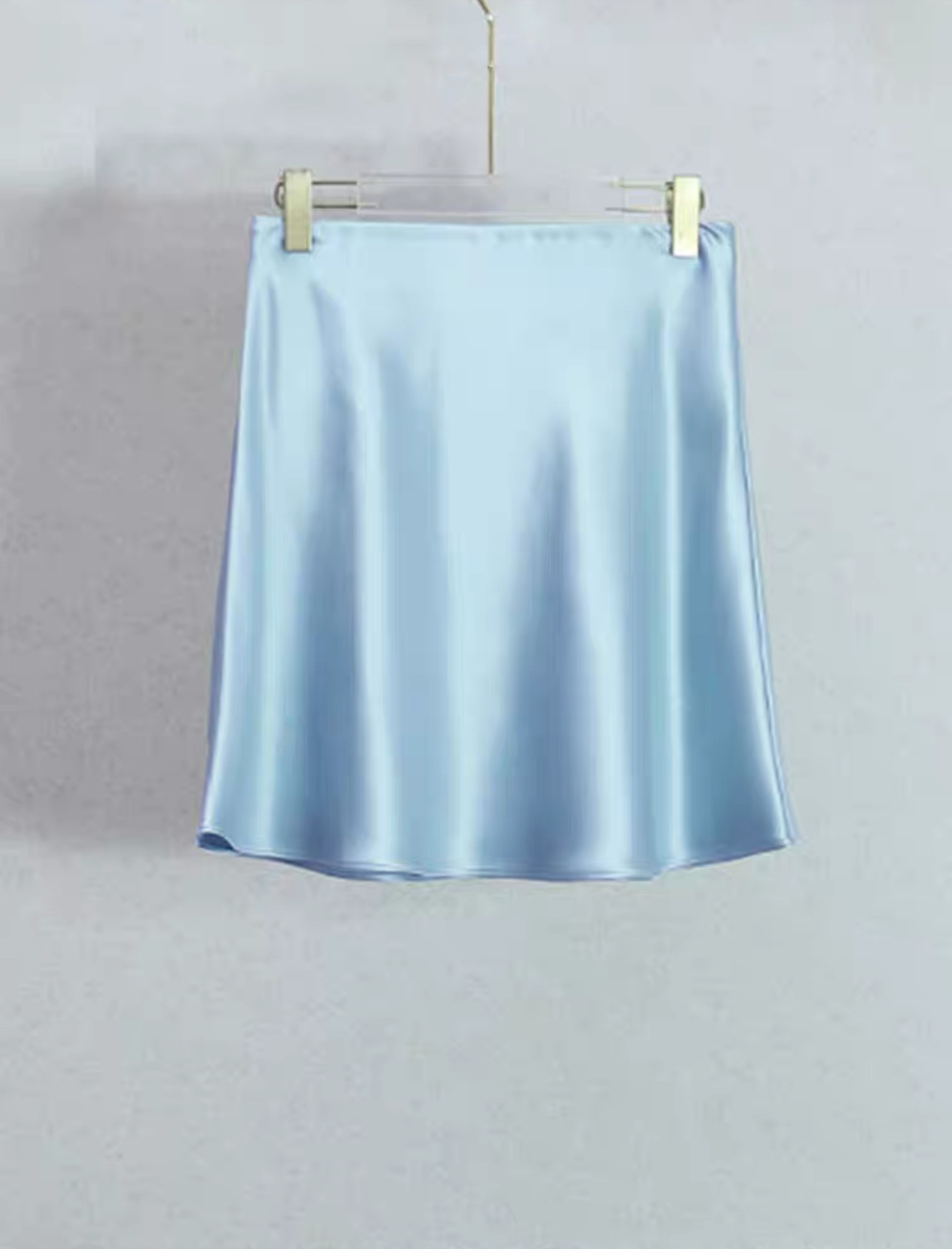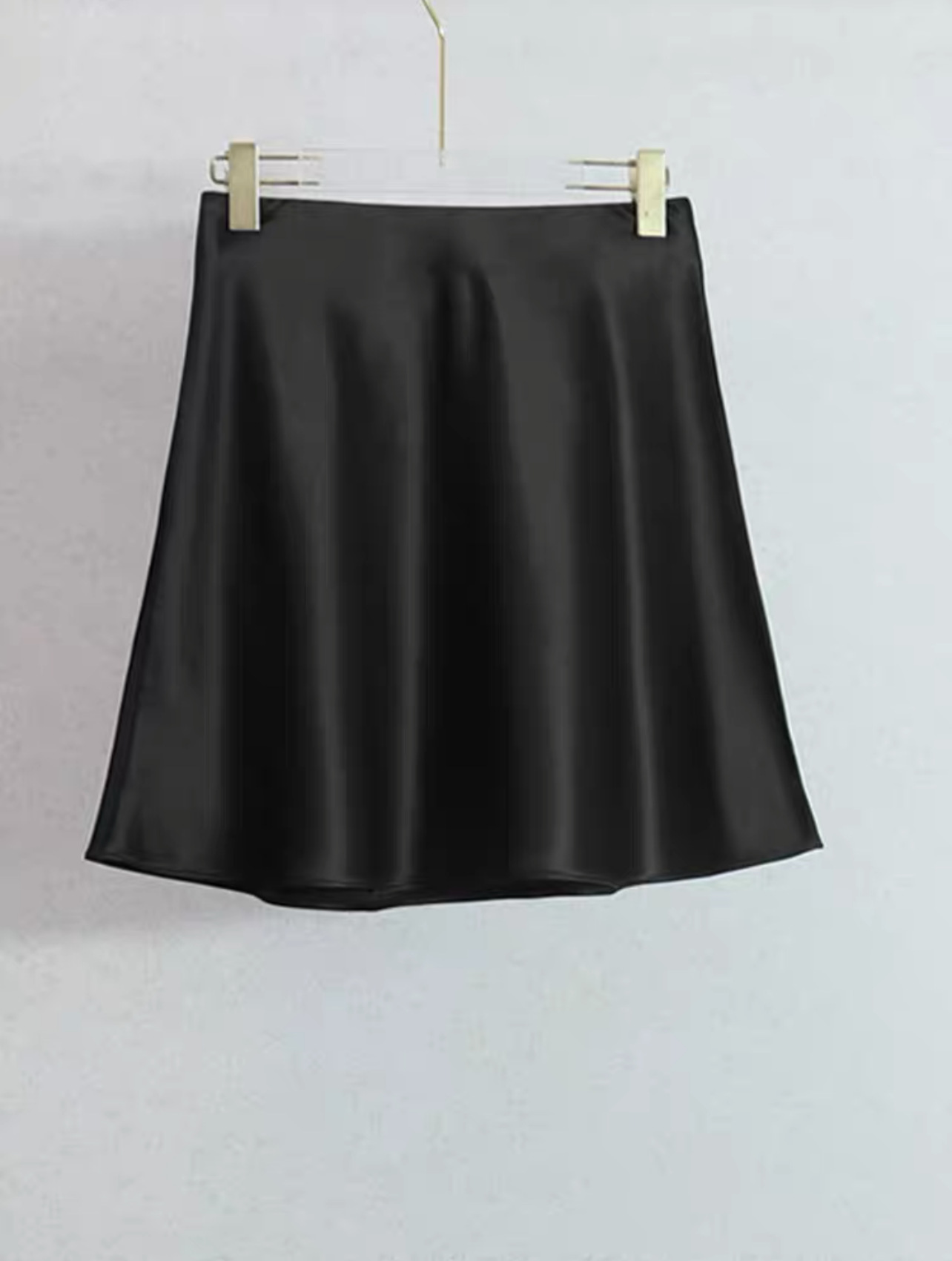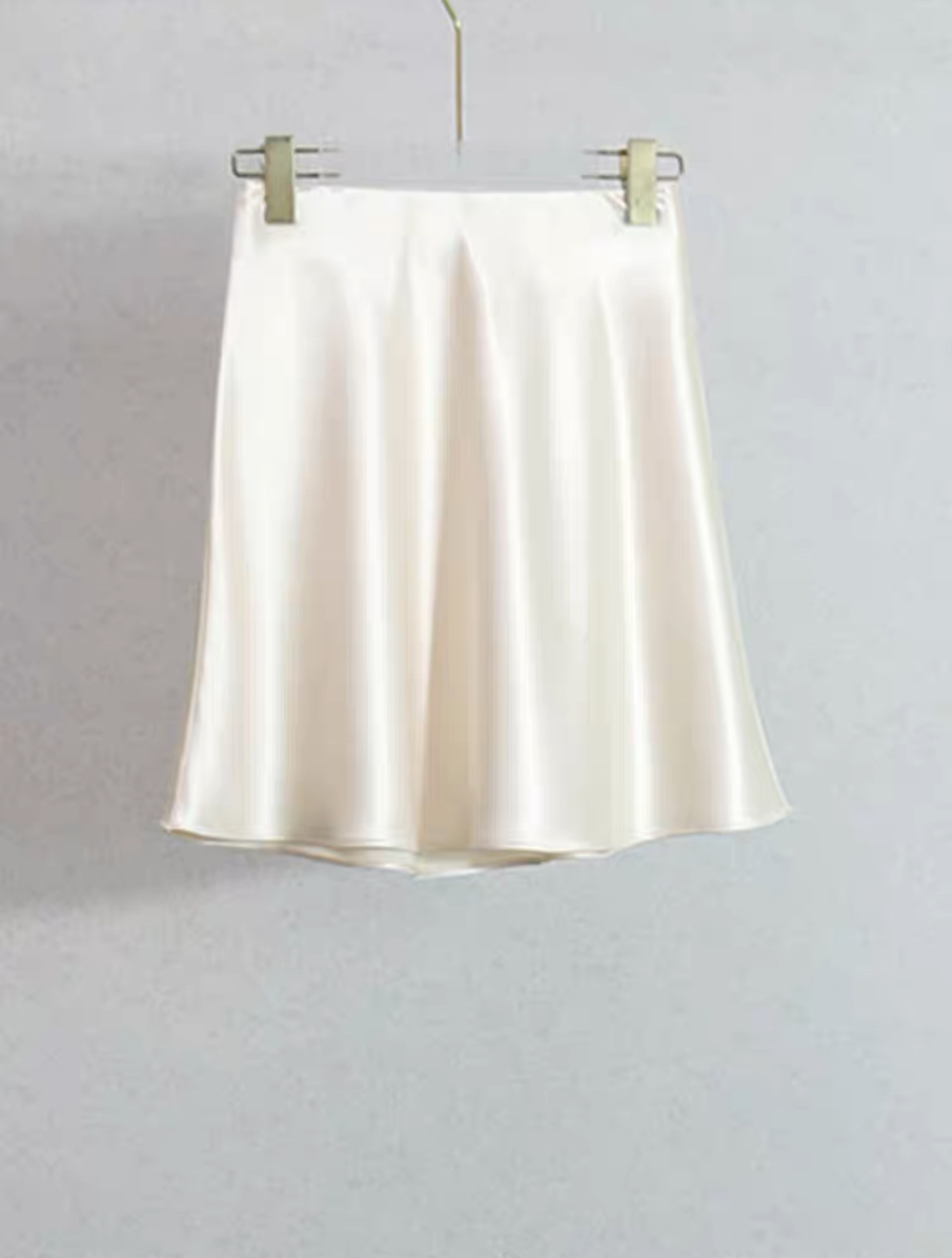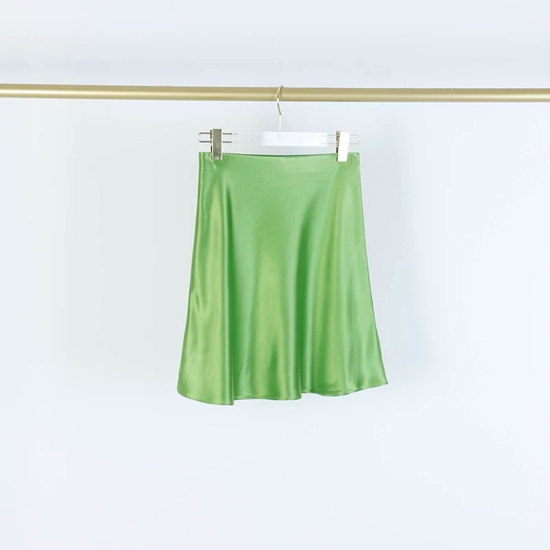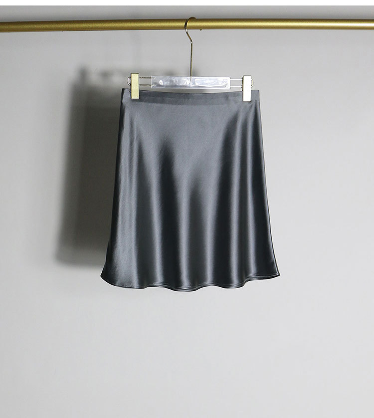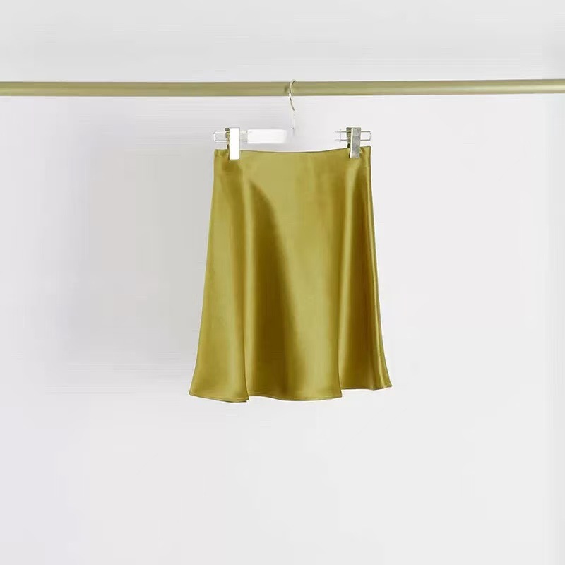 헤비웨이트 수입 삼아세테이트 스커트, 새틴 광택, 신축성 있는 허리, 사선 재단 A라인 머메이드 미니 스커트, 여성용 가을스토어 가기