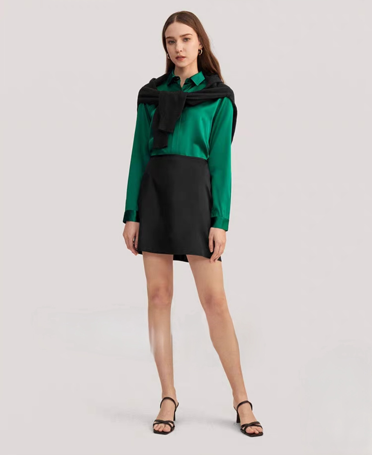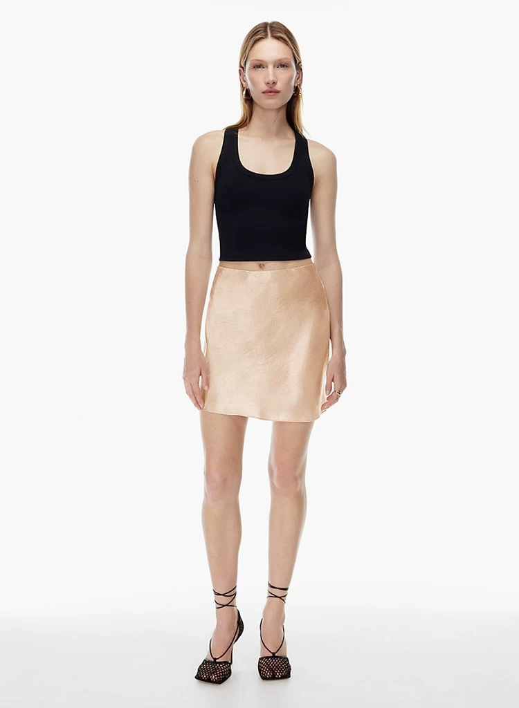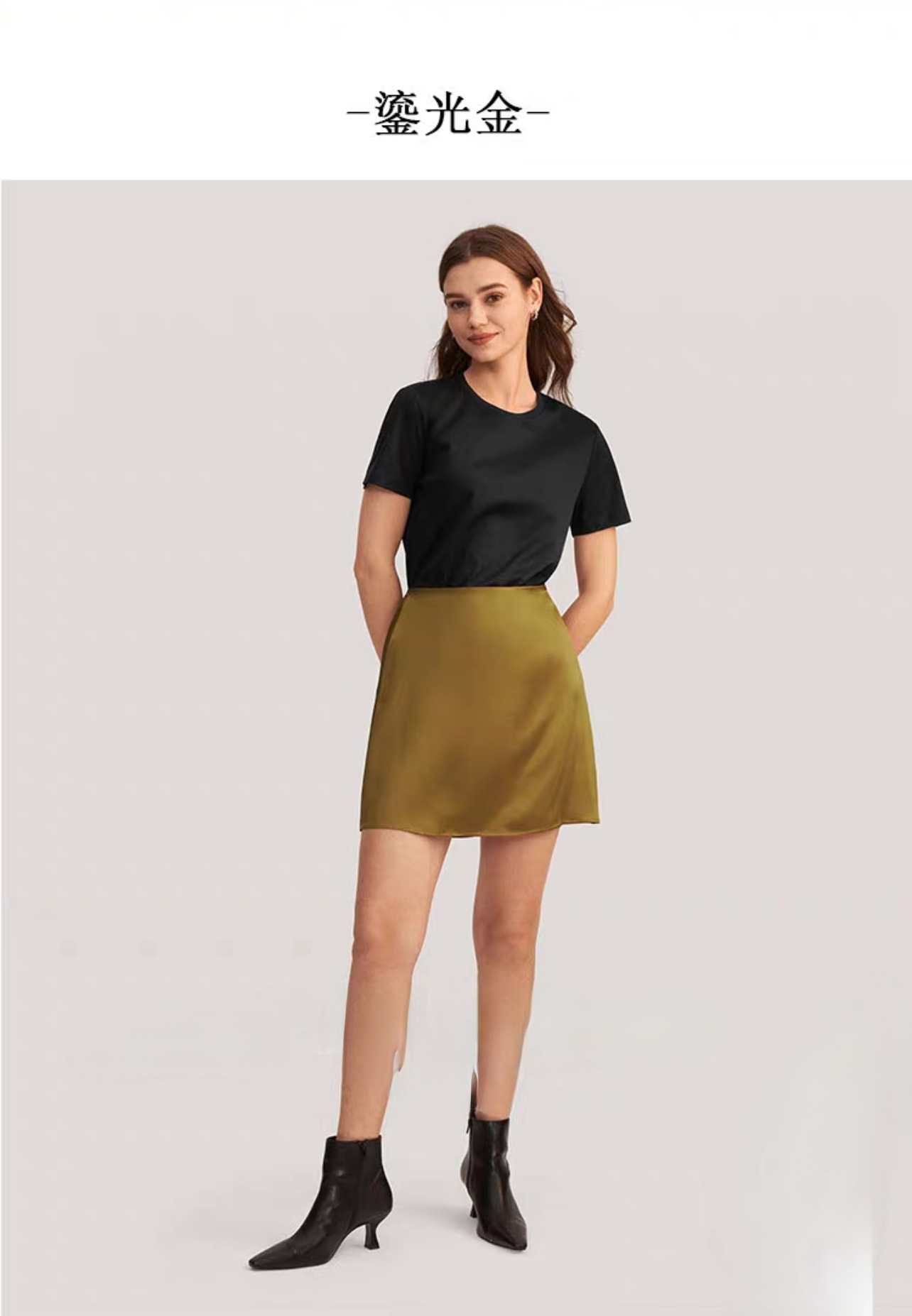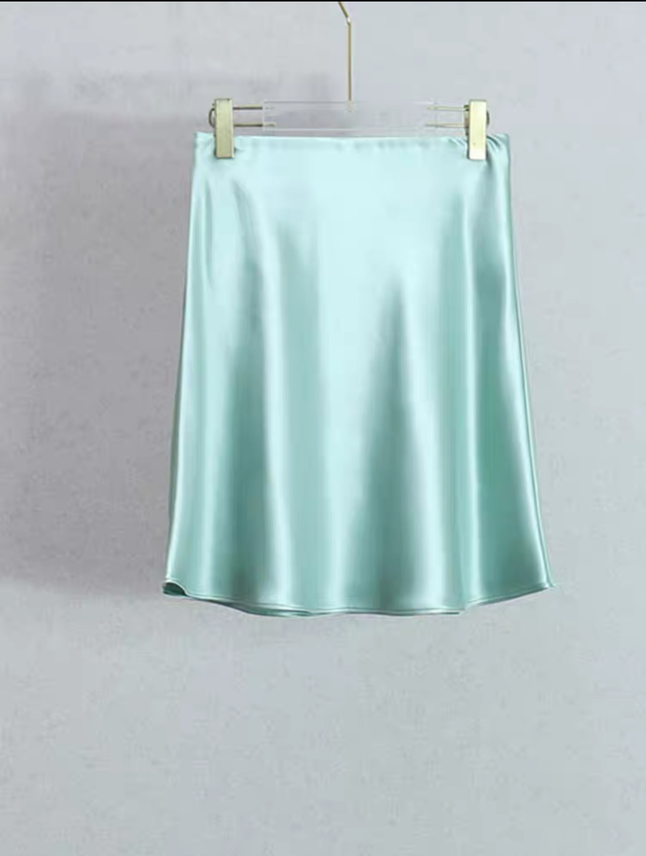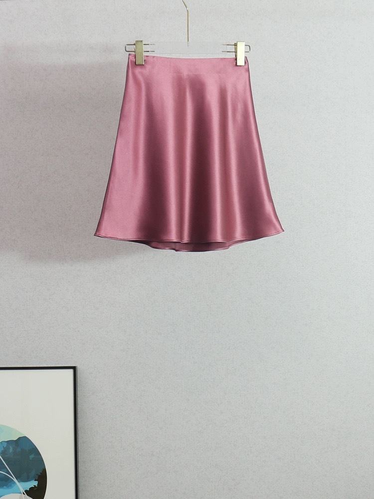 헤비웨이트 수입 삼아세테이트 스커트, 새틴 광택, 신축성 있는 허리, 사선 재단 A라인 머메이드 미니 스커트, 여성용 가을스토어 가기