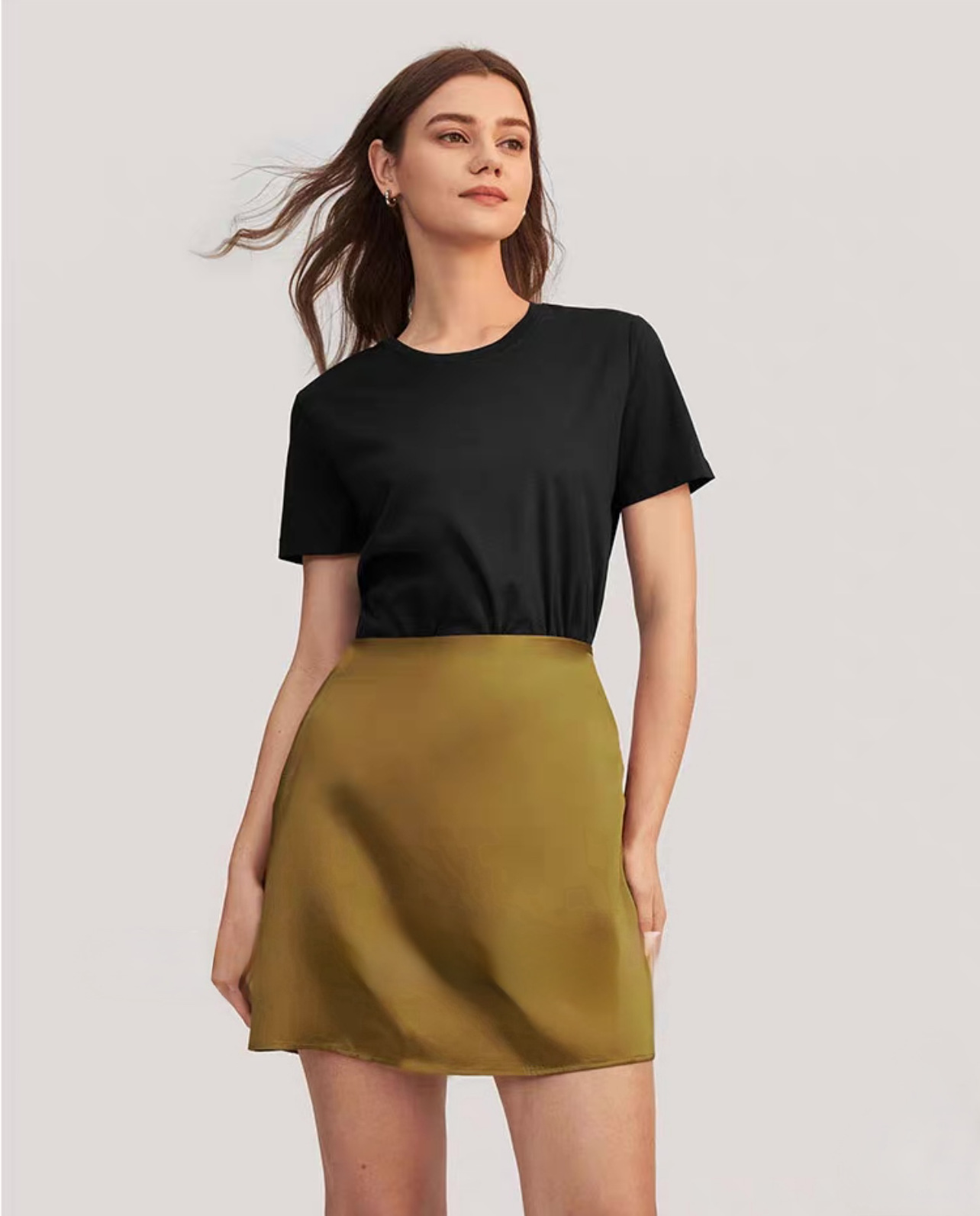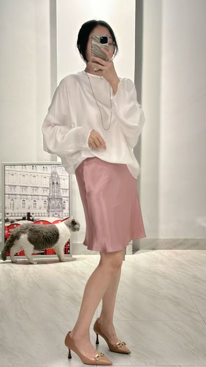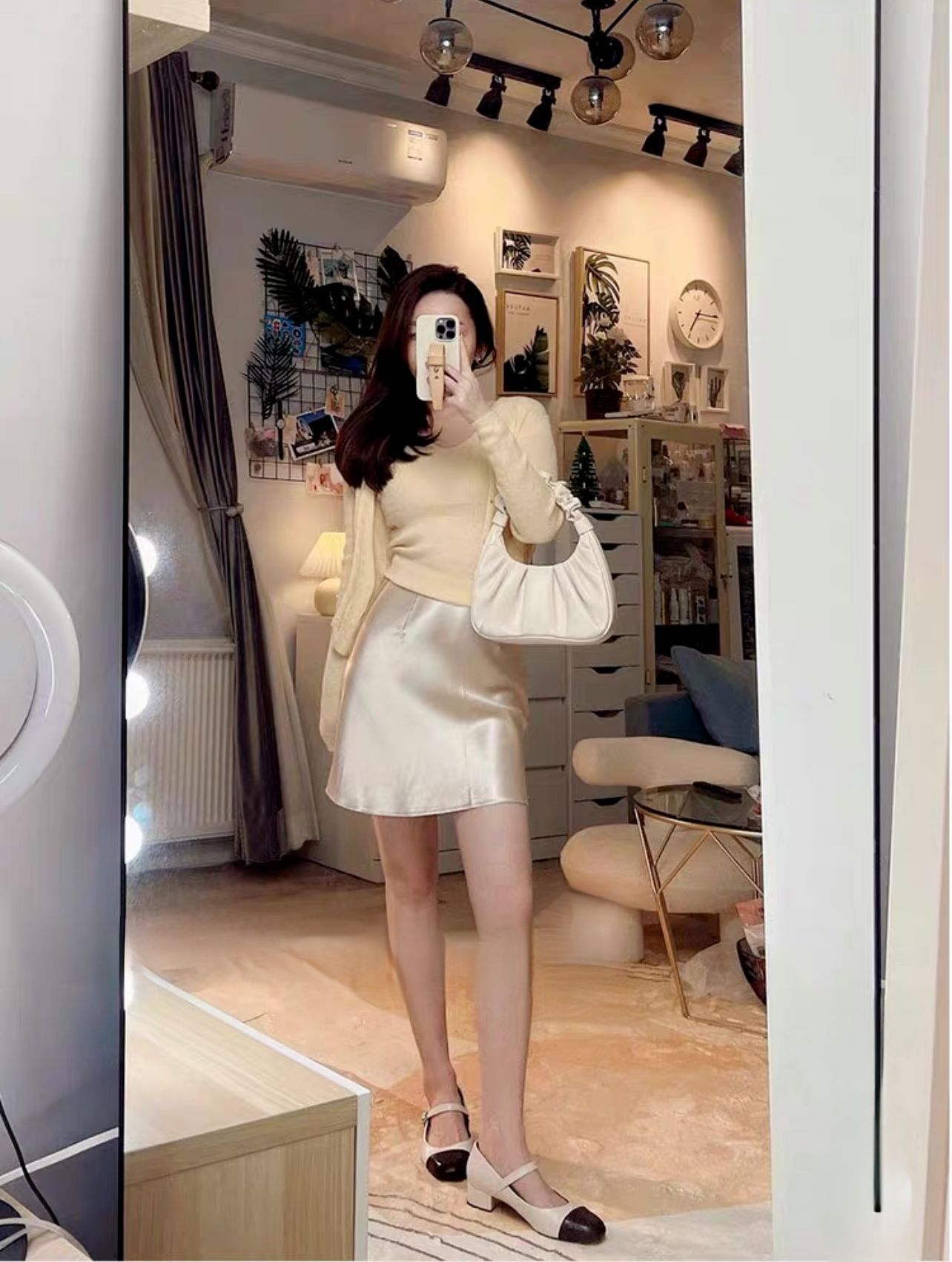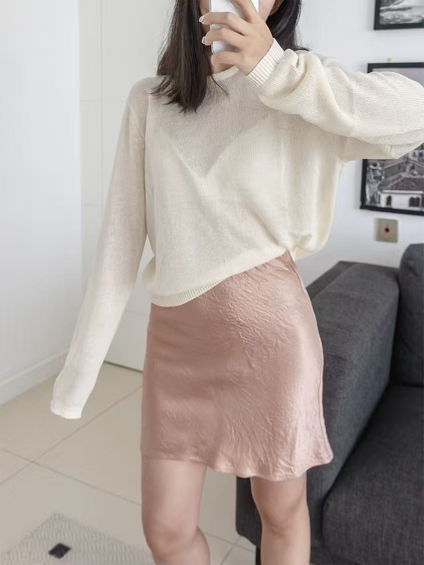 헤비웨이트 수입 삼아세테이트 스커트, 새틴 광택, 신축성 있는 허리, 사선 재단 A라인 머메이드 미니 스커트, 여성용 가을스토어 가기