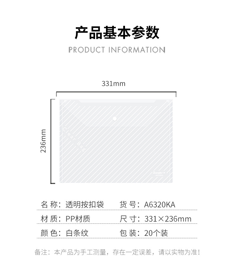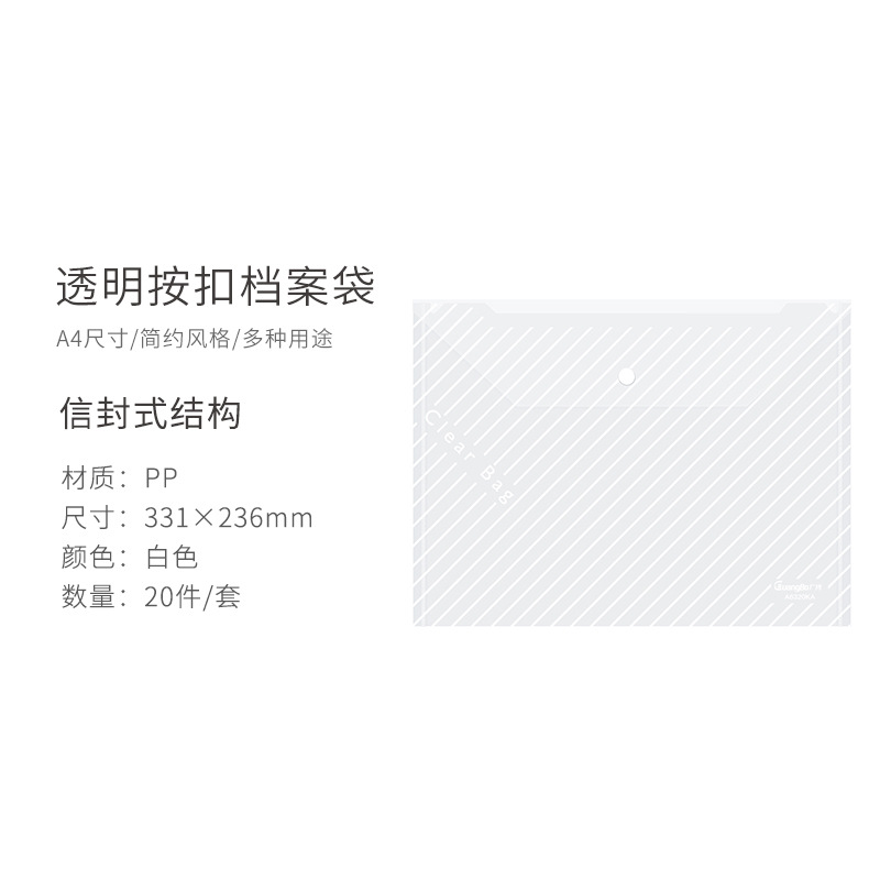 광보 A4 흰색 투명 트윌 스냅 파일 가방 보관 가방 파일 가방 정보 가방 20 팩 A6320KA