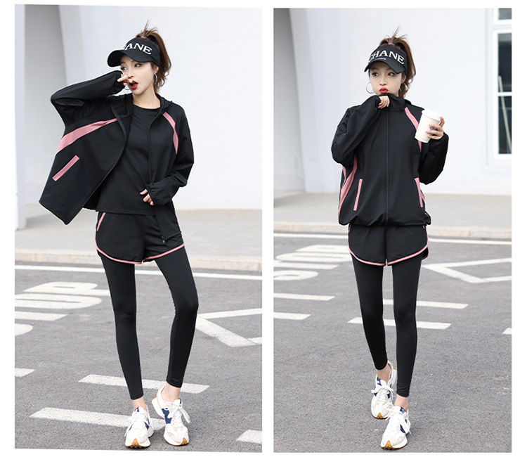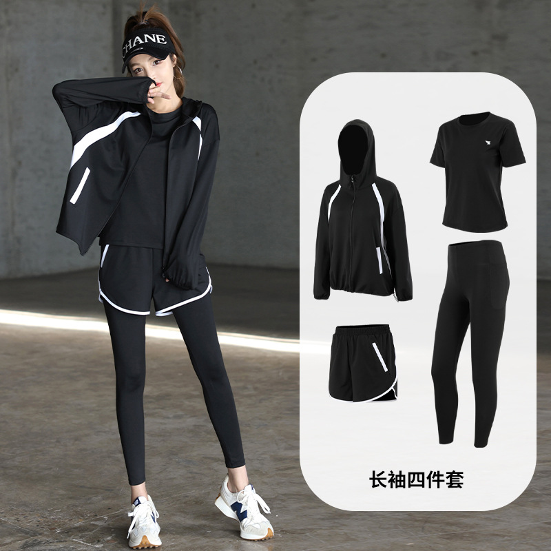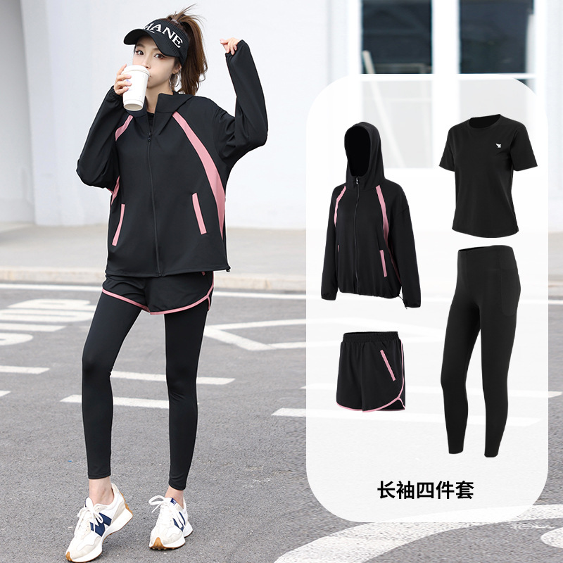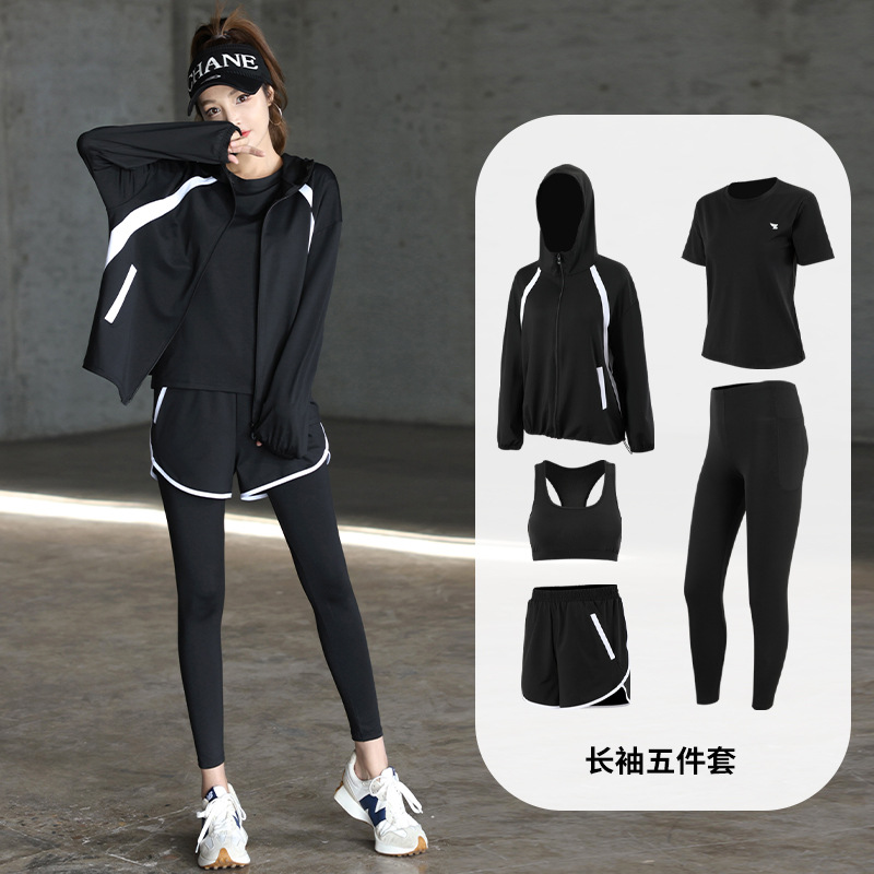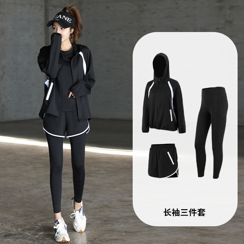 2023 가을과 겨울 새로운 요가 의류 세트 체육관 러닝 의류 느슨한 플러스 사이즈 속건 포켓 스포츠 세트 여성