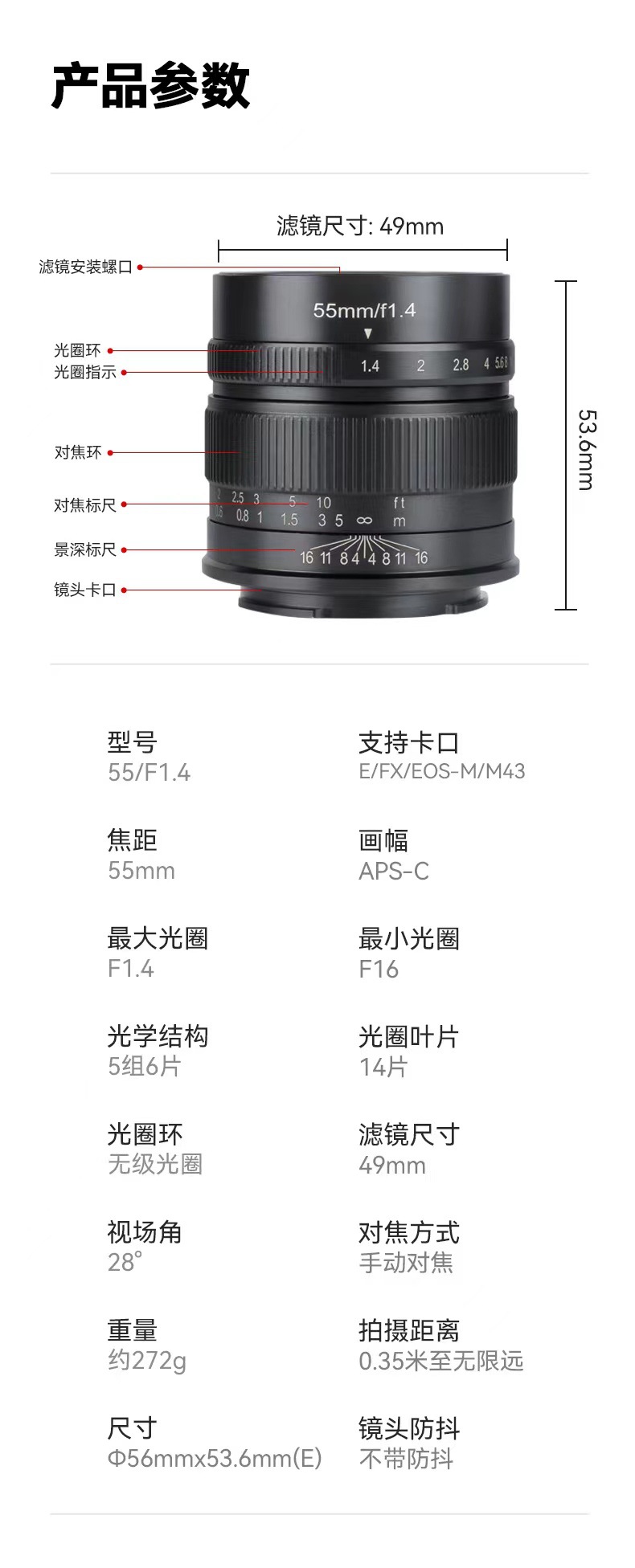 7 명의 장인 55mm f1.4 세대 대형 조리개 마이크로 단일 고정 초점 초상화 렌즈 e 총검 매뉴얼 xs10 zve10스토어 가기
