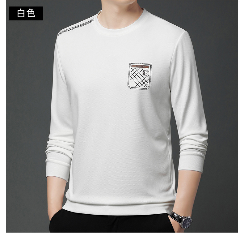 스웨터 남자의 한국 스타일 유행 가을 새로운 남자의 라운드 넥 긴 소매 티셔츠 캐주얼 풀오버 남성용 기본 셔츠
