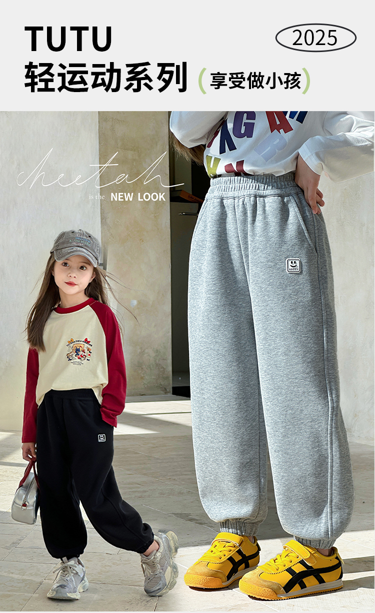 Tutu Little Elephant Girls 봄 바지 2025 봄, 가을 새로운 어린이 스포츠 바지 슬림 피트 학교 유니폼 바지