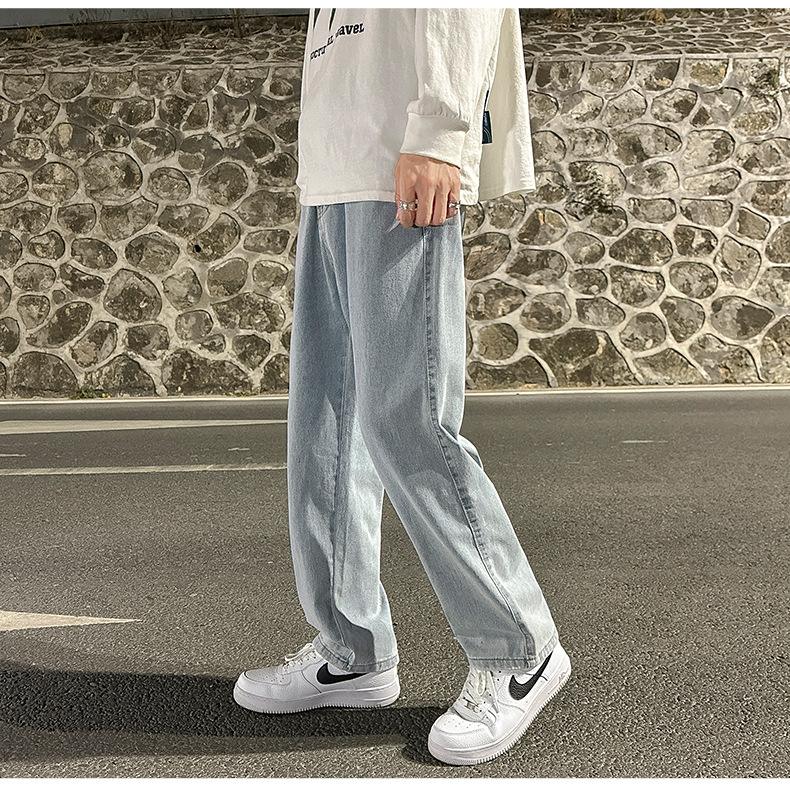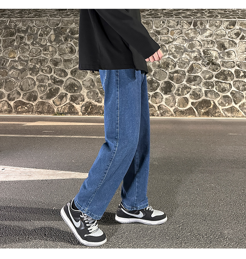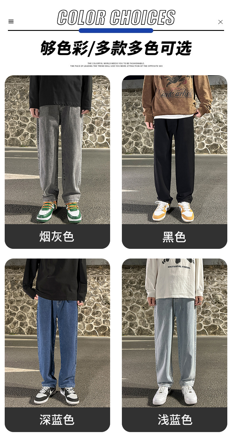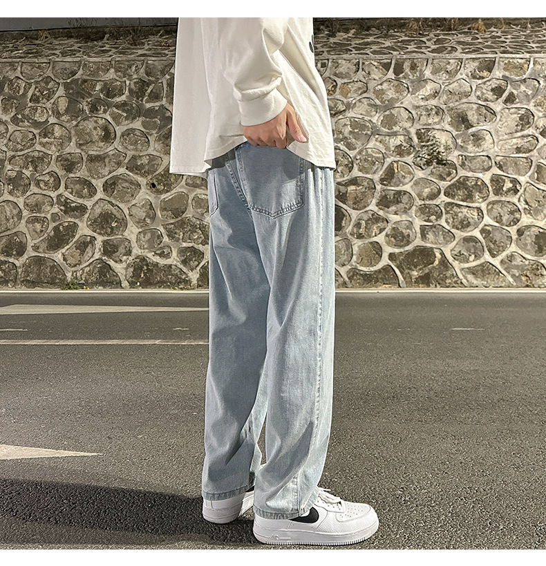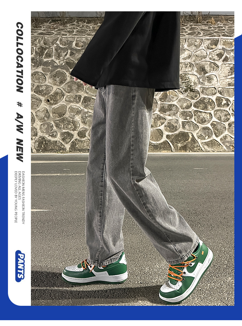 스모크 그레이 진 남성용 느슨한 와이드 레그 팬츠 남성용 봄 신상품 홍콩 스타일 Instagram 인기 브랜드 스트레이트 팬츠 남성용스토어 가기