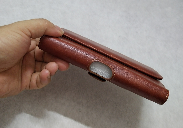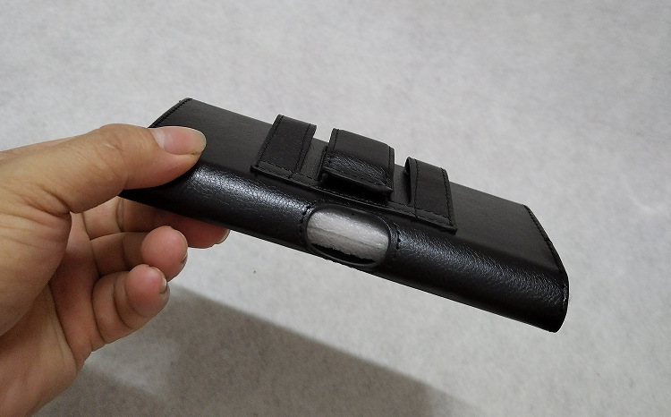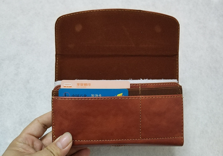 皮套设计上可插2个银行卡,皮套左右边上,是松紧带的