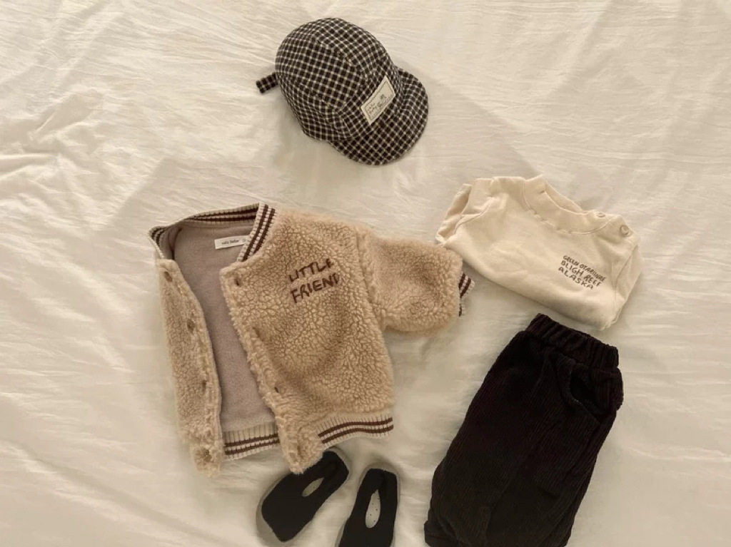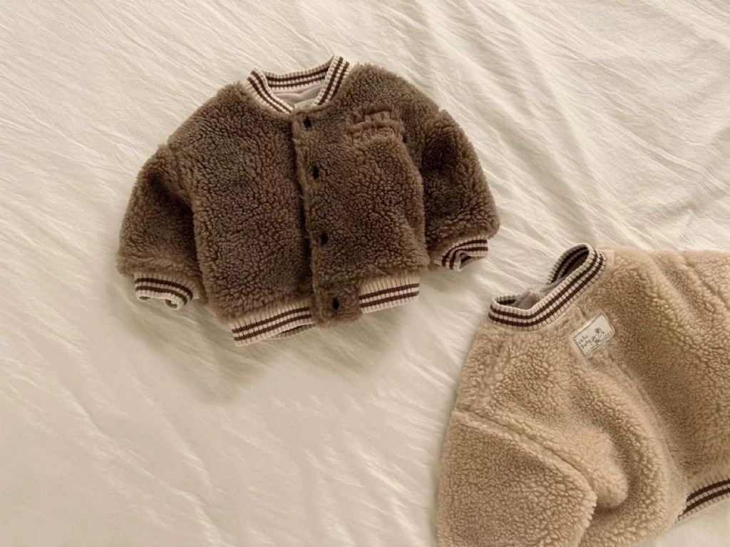 한국 스타일의 기모 두꺼운 야구 코트 양고기 양털 긴 소매 탑 어린이의 따뜻한 가을과 겨울 아기 소년과 소녀스토어 가기