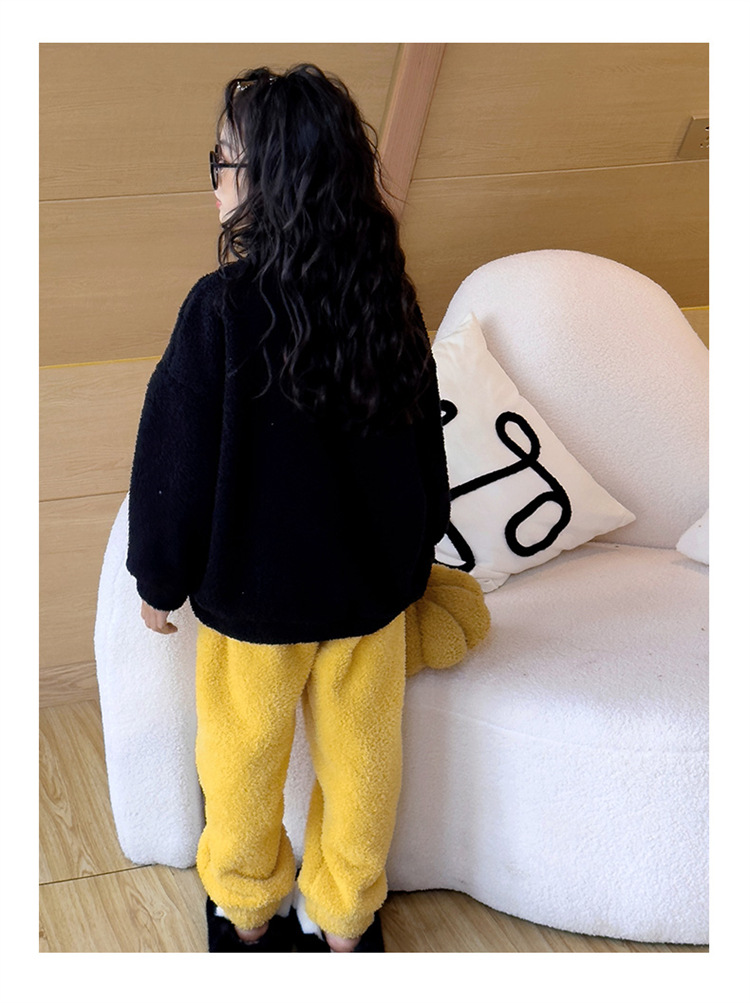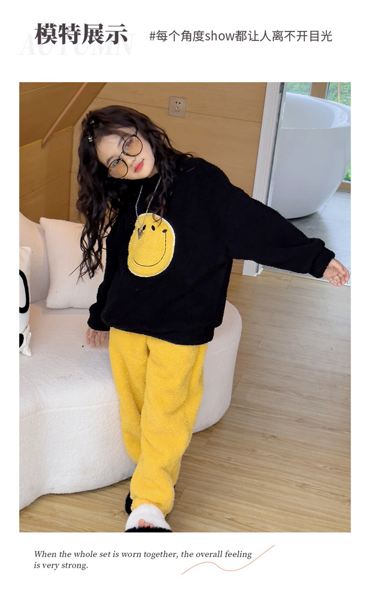 소녀 스마일리 프린트 세트 가을과 겨울 한국 스타일 느슨한 게으른 스타일 가정 옷 어린이 세련된 산호 양털 잠옷스토어 가기