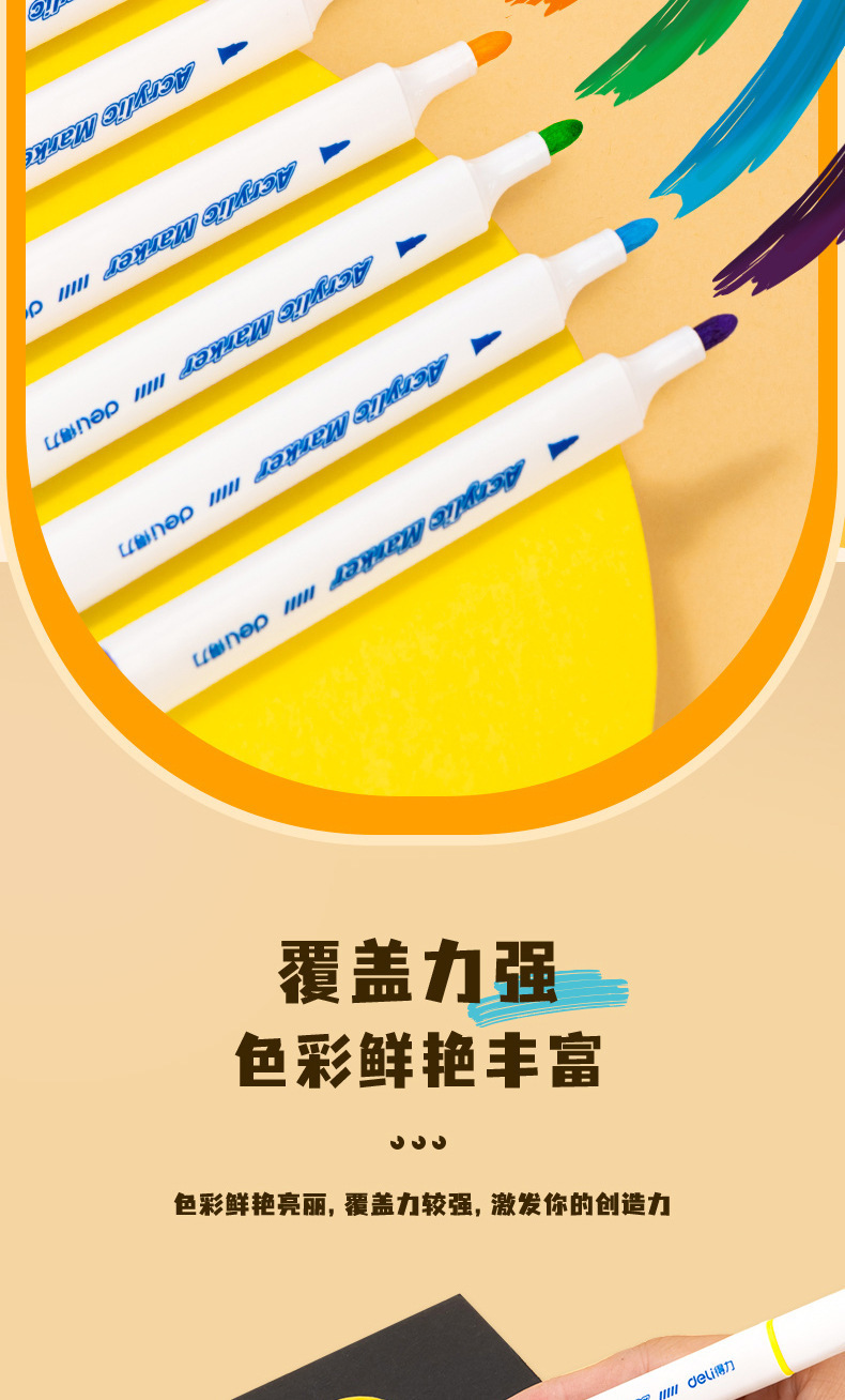 델리 문구 아크릴 마커 펜 빨 학생 어린이 예술 특수 브러시 방수 불투명 컬러 펜