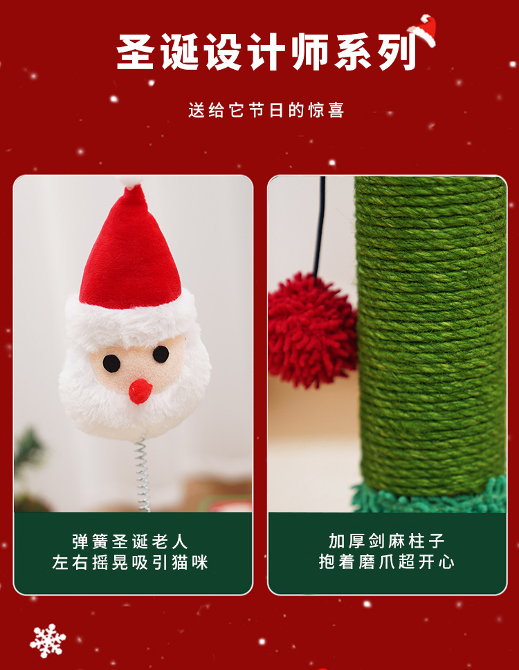 크리스마스 시리즈 사이잘삼 고양이 스크래치 기둥 내마모성 및 쥐기 방지 수직 스크랩 프리 고양이 스크래치 보드 작은 고양이 장난감스토어 가기