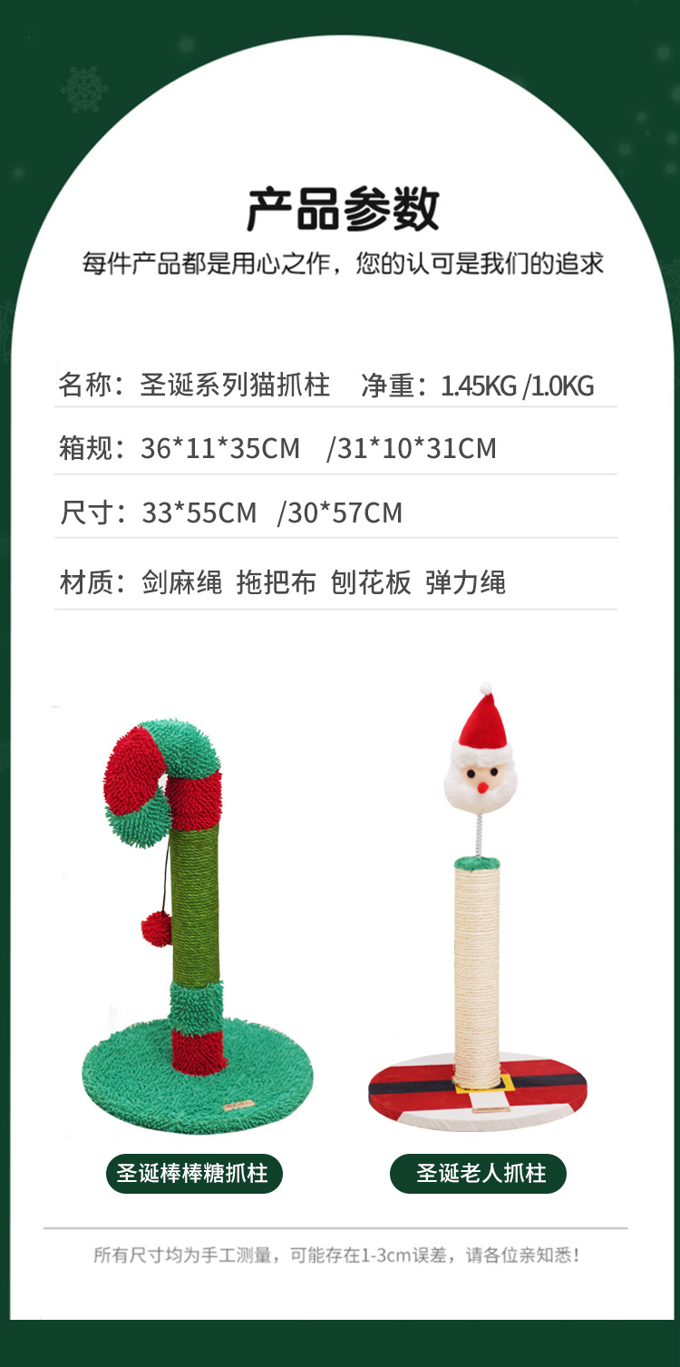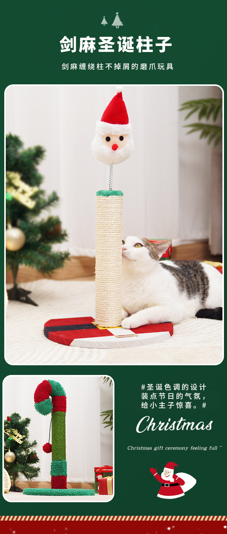 크리스마스 시리즈 사이잘삼 고양이 스크래치 기둥 내마모성 및 쥐기 방지 수직 스크랩 프리 고양이 스크래치 보드 작은 고양이 장난감