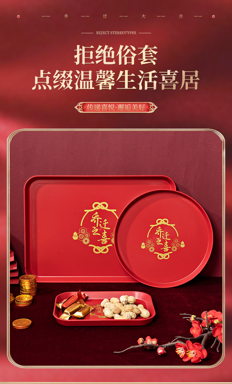 집들이 새 집 빨간 과일 접시 거실 집 마른 과일 접시 티 트레이 하우스 이동 축제 스낵 트레이