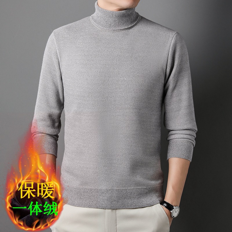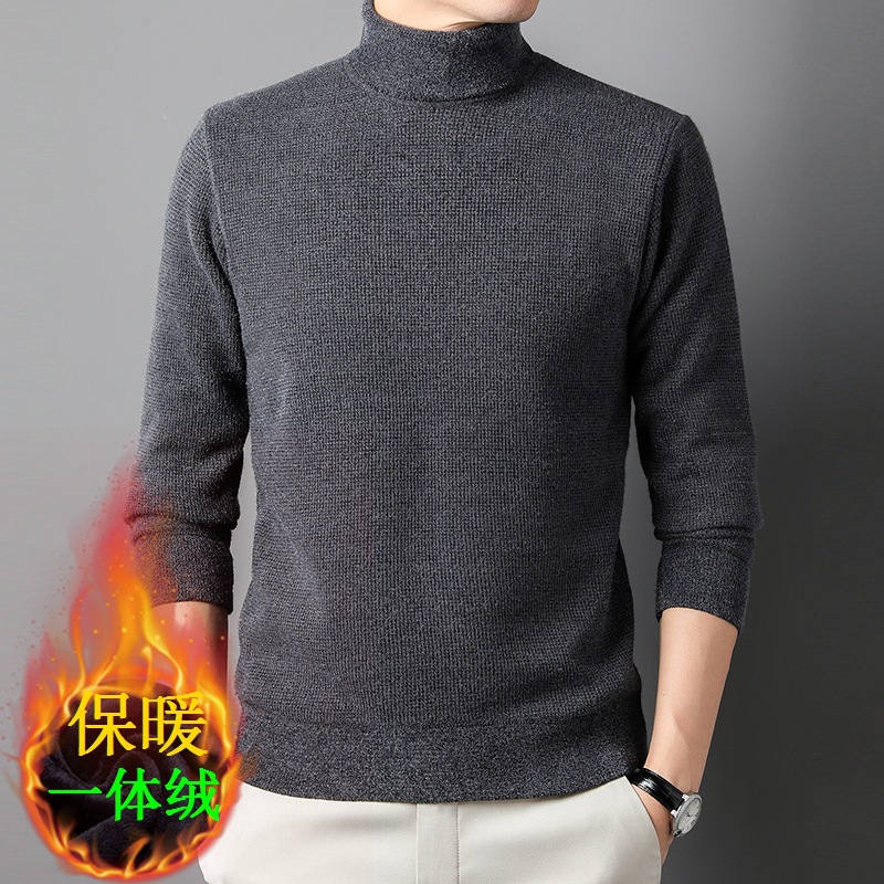 2023 가을/겨울 새로운 터틀 넥 남성용 라펠 니트 셔츠 기모 두꺼운 백킹 내부 재킷 따뜻한 스웨터