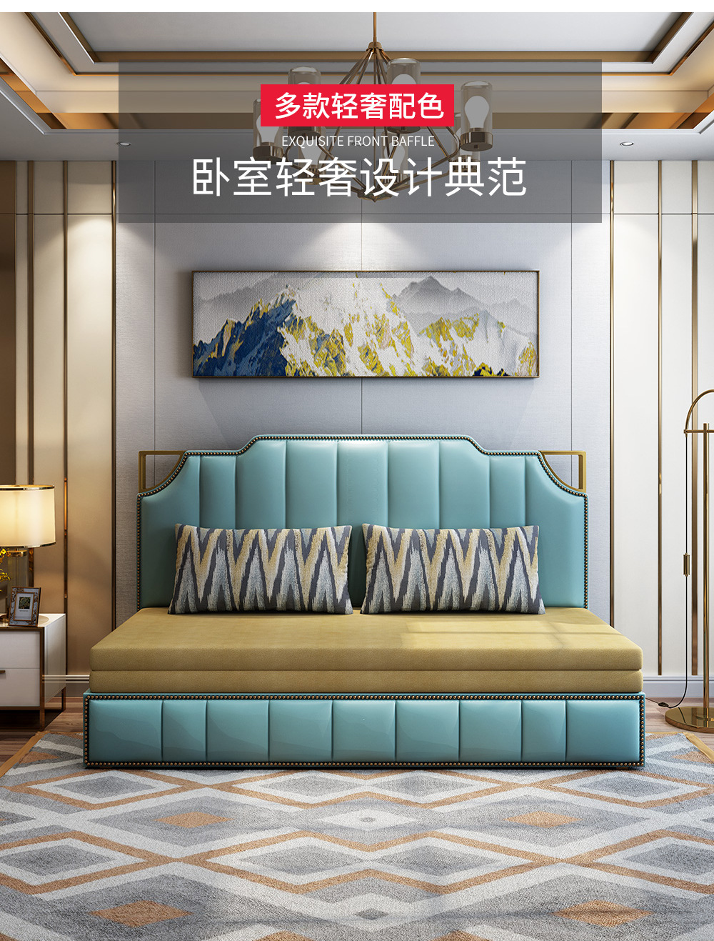 아메리칸 스타일 라이트 럭셔리 소파 베드 기술 천 이중 목적 접이식 다기능 가정용 거실 수납 소파 베드 소형 아파트