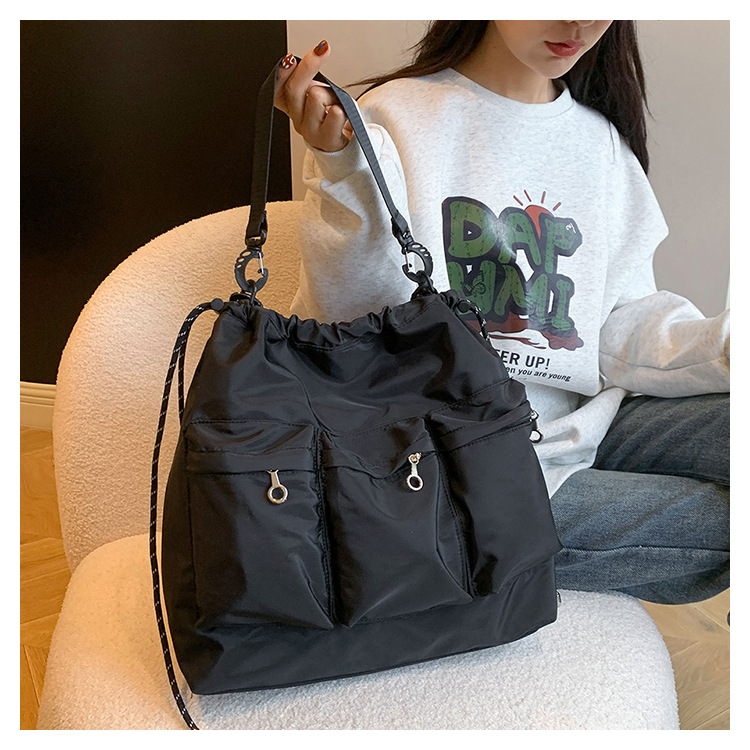 일본 하라주쿠 블랙 토트 백 여성용 2023 년 최신 유행 쿨 캠퍼스 캐주얼 스포츠 숄더 크로스바디 백