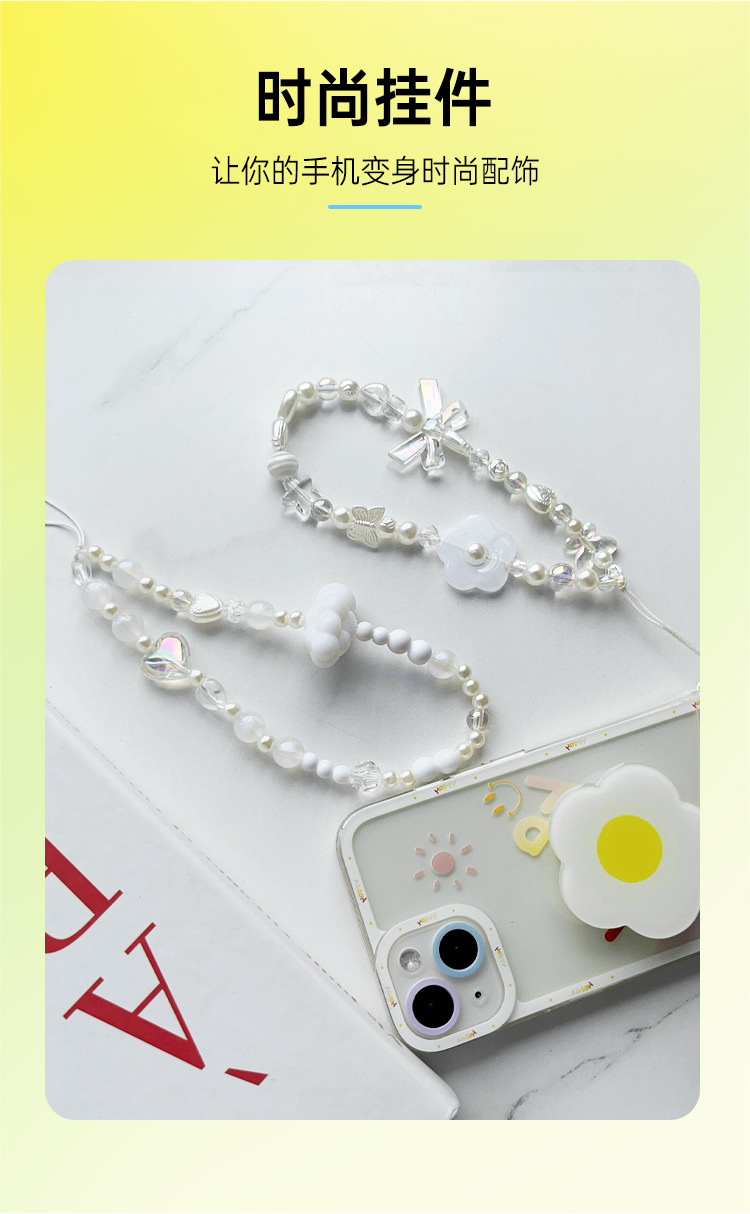 새로운 얼음 투명 컬러 흰 구름 작은 꽃 유니버설 끈 창조적 인 활 휴대 전화 체인 낙하 방지 펜던트스토어 가기