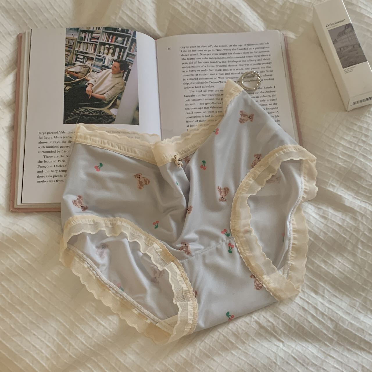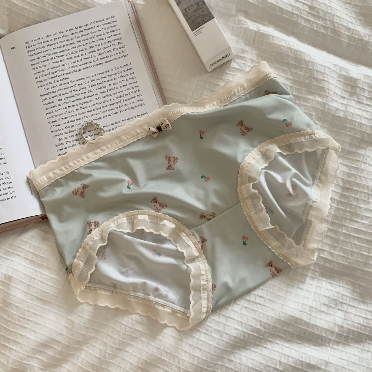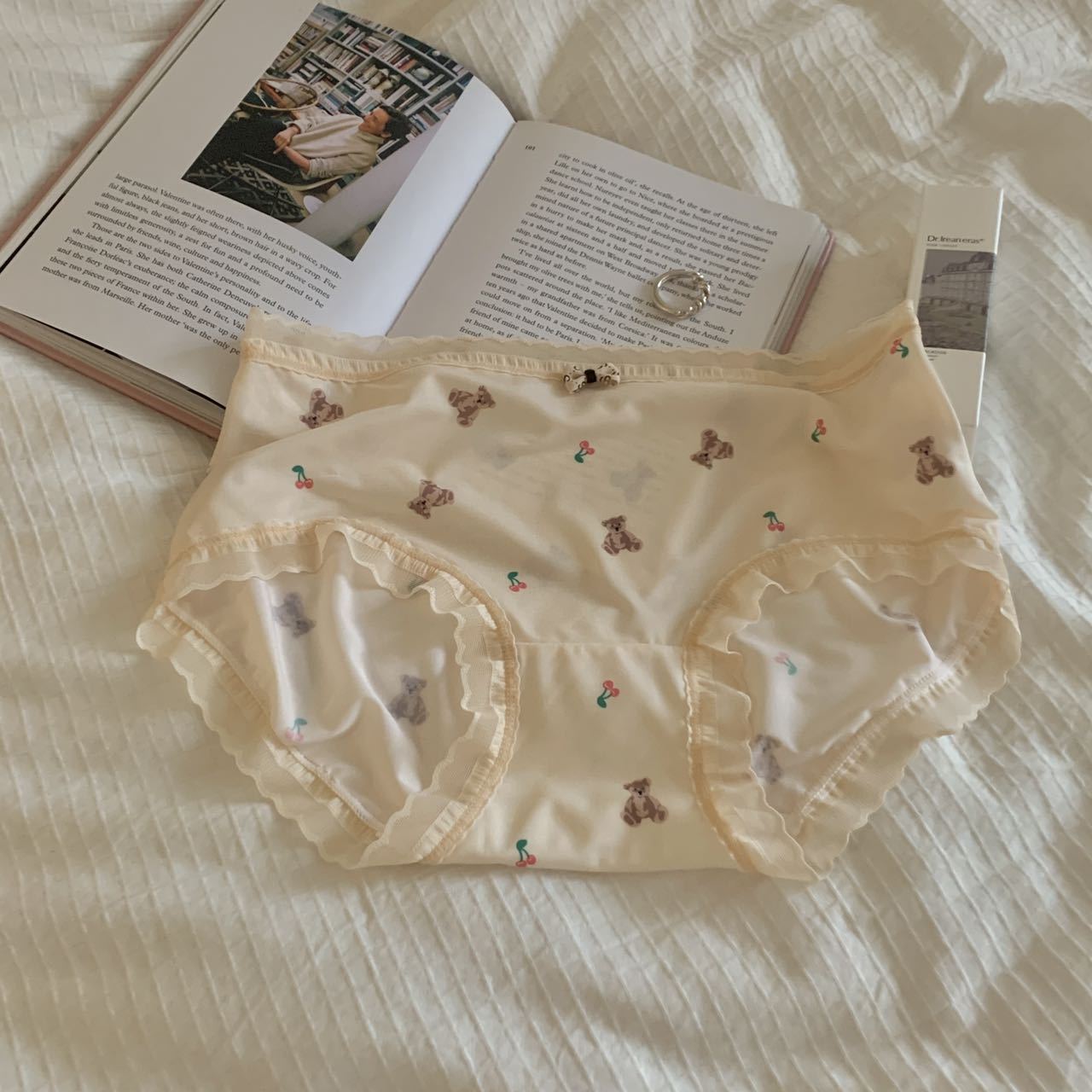 만화 곰 인쇄 원활한 일본 누드 달콤한 귀여운 아이스 실크 마스크 삼각형 속옷 소녀 얇은스토어 가기