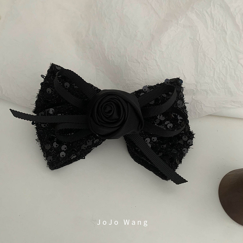 저녁 식사 ~ 스팽글 블랙 보우 머리핀 여성 앞머리 머리 모자 헤어 액세서리 사이드 클립 소녀 사이드 클립 탑 클립