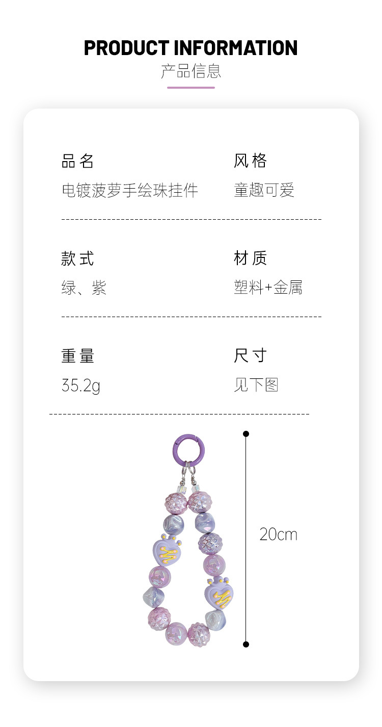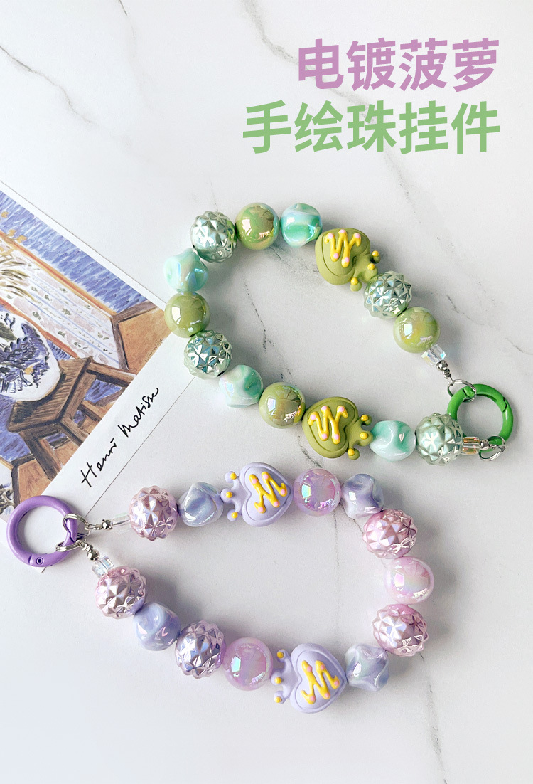 새로운 색상 도금 파인애플 손으로 그린 비즈 휴대 전화 펜던트 DIY 휴대 전화 케이스 보석 교수형 체인 드롭 방지 키 체인 액세서리