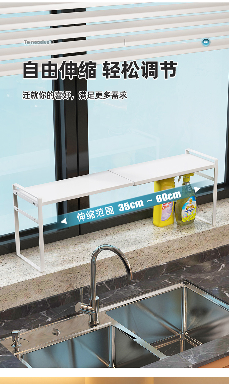주방 창턱 선반 확장 가능한 이중층 매우 좁은 확장 가능한 저장 아티팩트 조미료 세제 세척 탱크스토어 가기