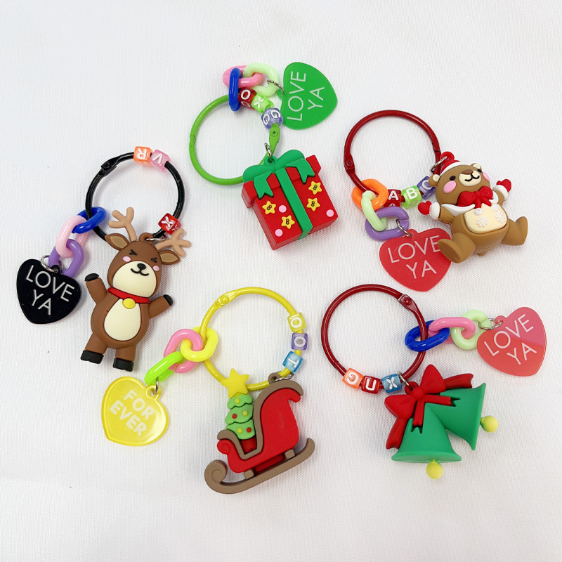 새로운 크리스마스 매달려 체인 만화 자동차 열쇠 고리 가방 펜던트 창조적 인 휴대 전화 체인 이어폰 가방 매달려 액세서리