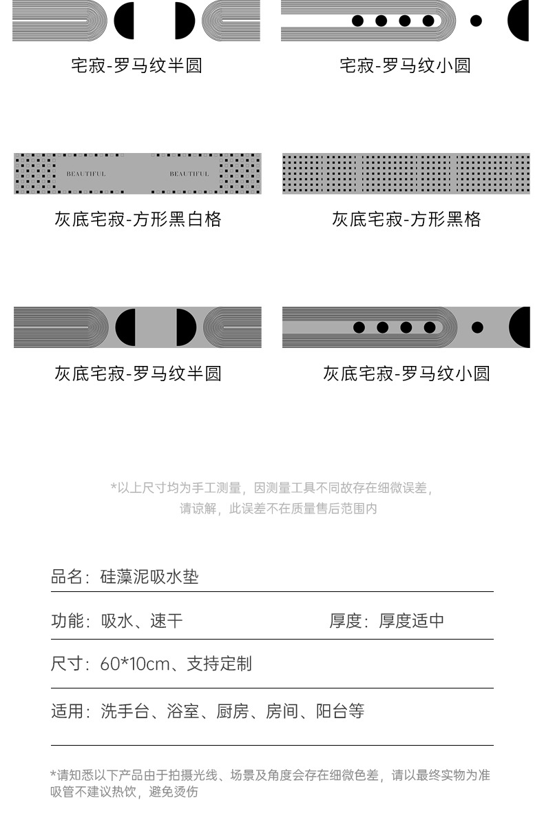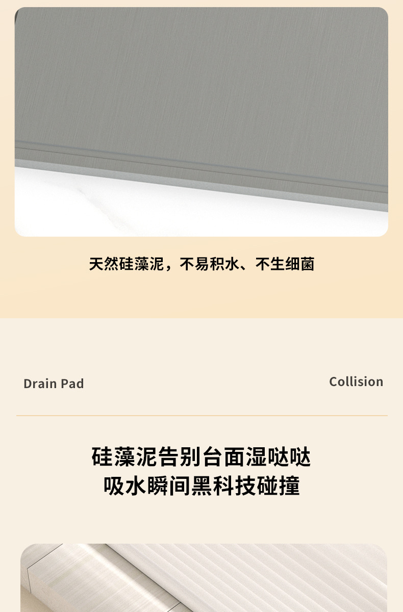 조용한 바람 규조 진흙 수도꼭지 화장실 속건성 곰팡이 방지 방수 매트 세면기 조리대 배수 매트