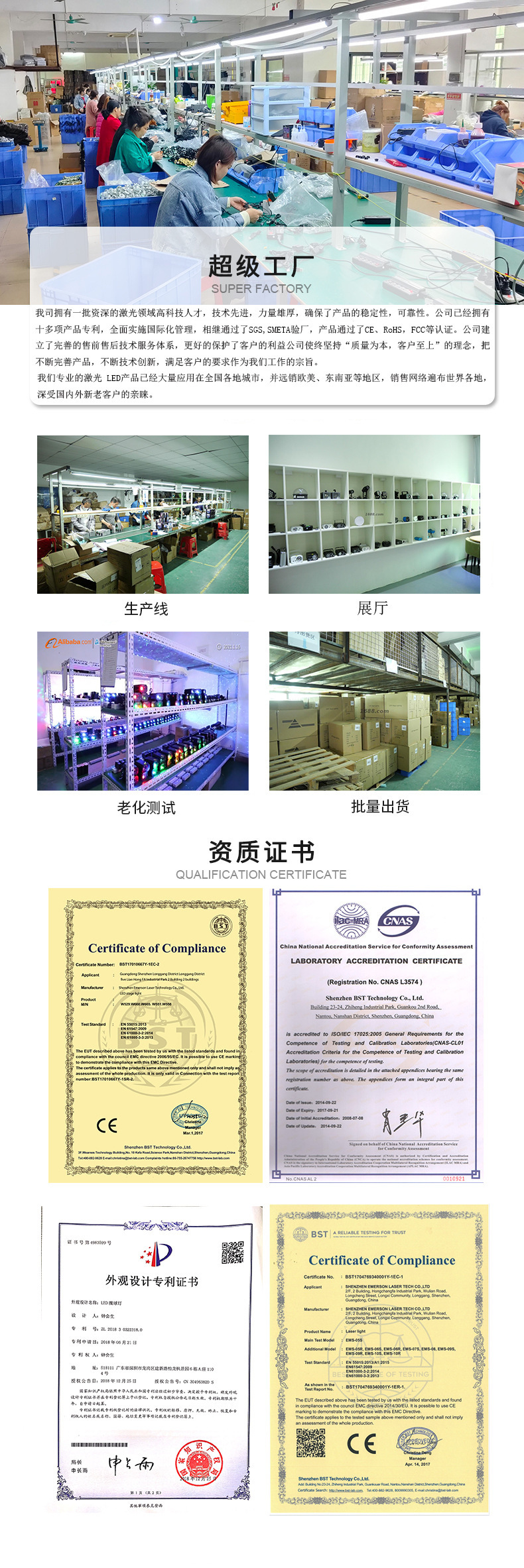 1、公司位于深圳龙岗,专业生产销售迷你舞台激光灯,质量为本、诚信经营是我公司经营的宗旨,公司有4年激光灯生产和销售经验,确保了激光的亮度和稳定性;产品必须经过严格的功能测试和长时间的老化测试才能包装出货,确保了质量;产品远销国外,深受客户信赖,欢迎大家光临采购!