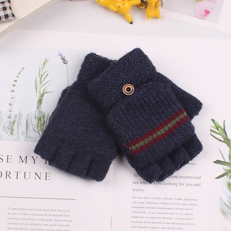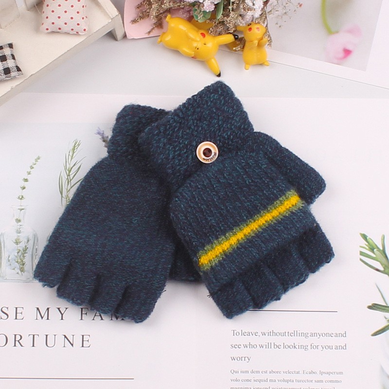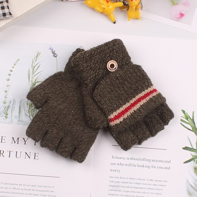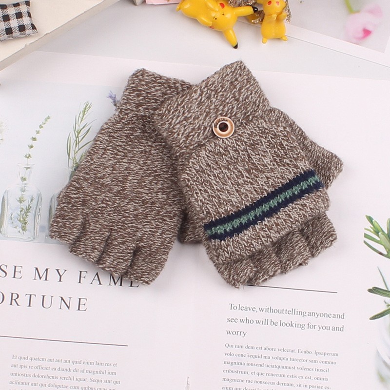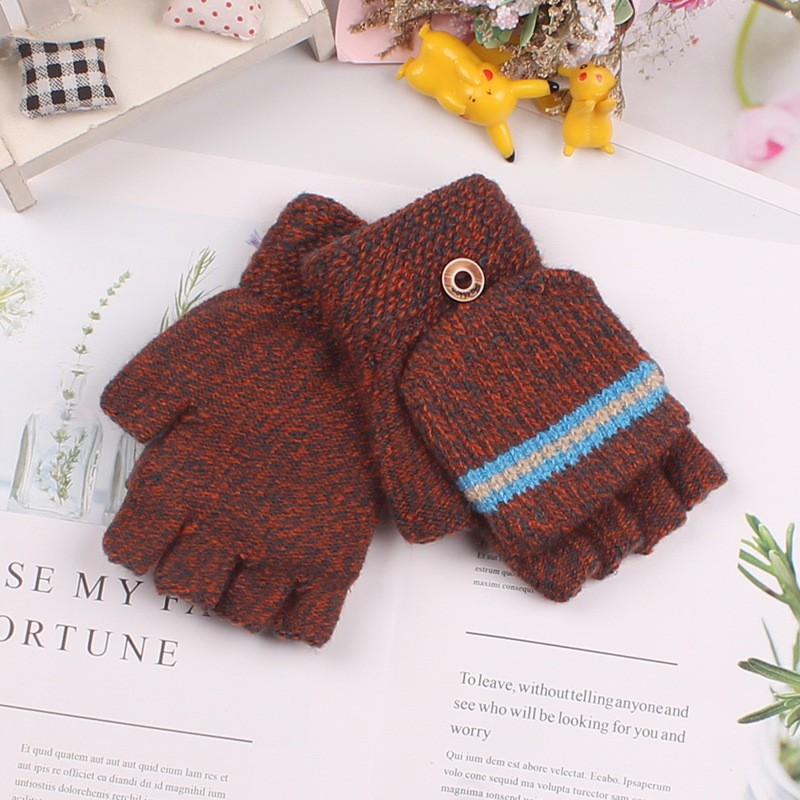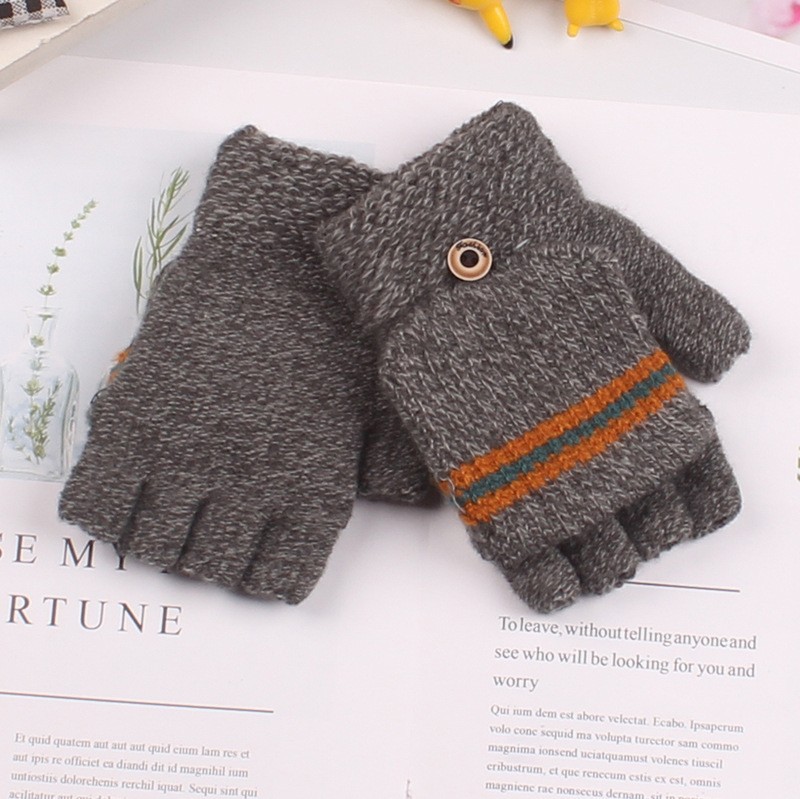 겨울 야외 큰 어린이 장갑 반 손가락 플립 커버 이중 목적 따뜻한 장갑 학생용 어린이 AB 원사 자카드
