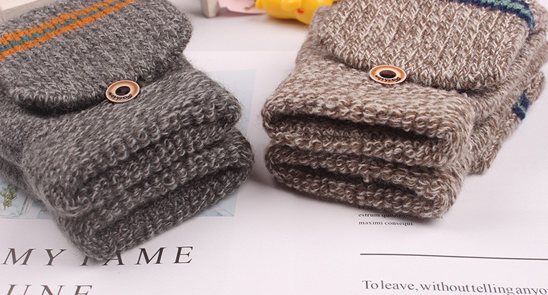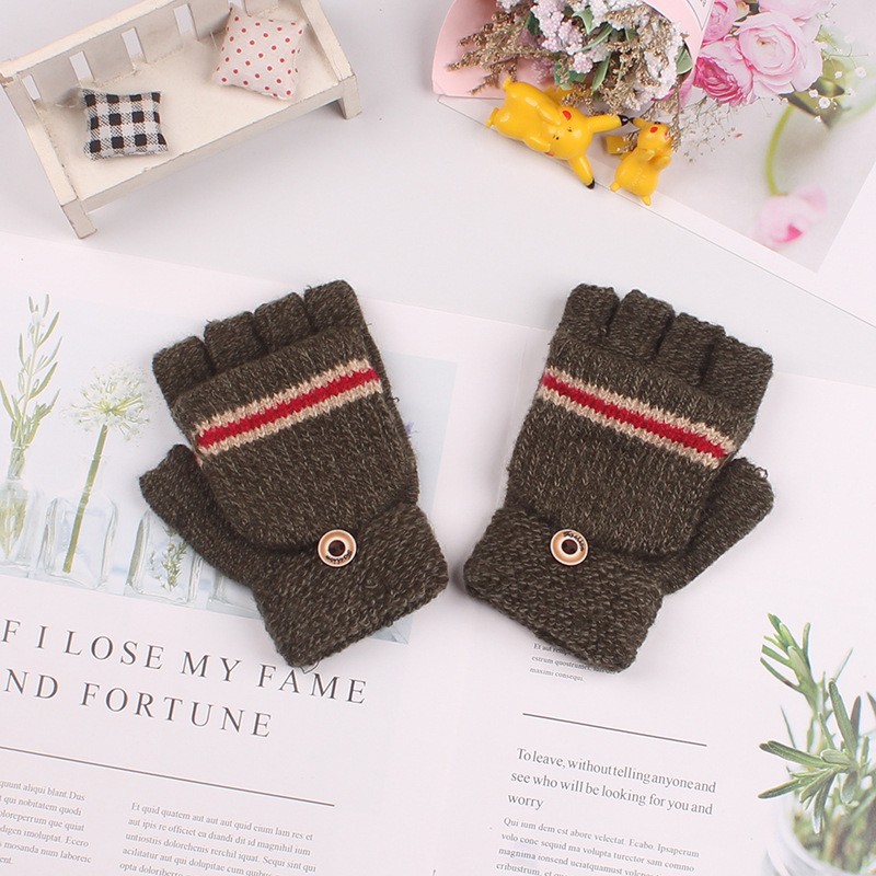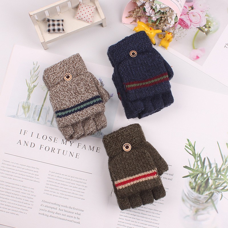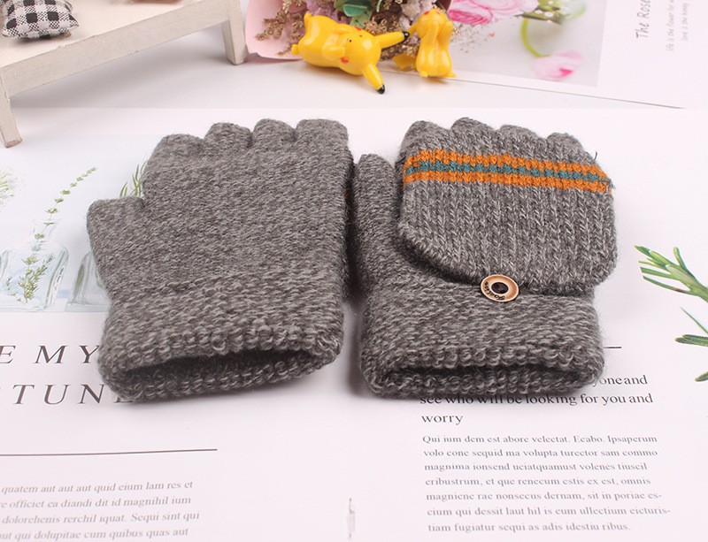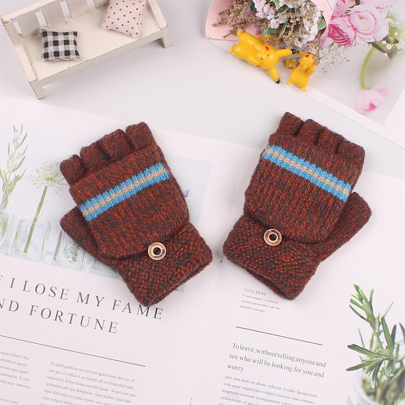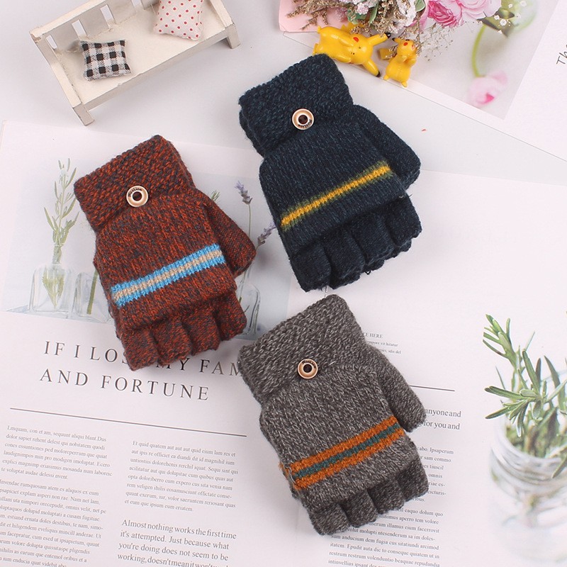 겨울 야외 큰 어린이 장갑 반 손가락 플립 커버 이중 목적 따뜻한 장갑 학생용 어린이 AB 원사 자카드