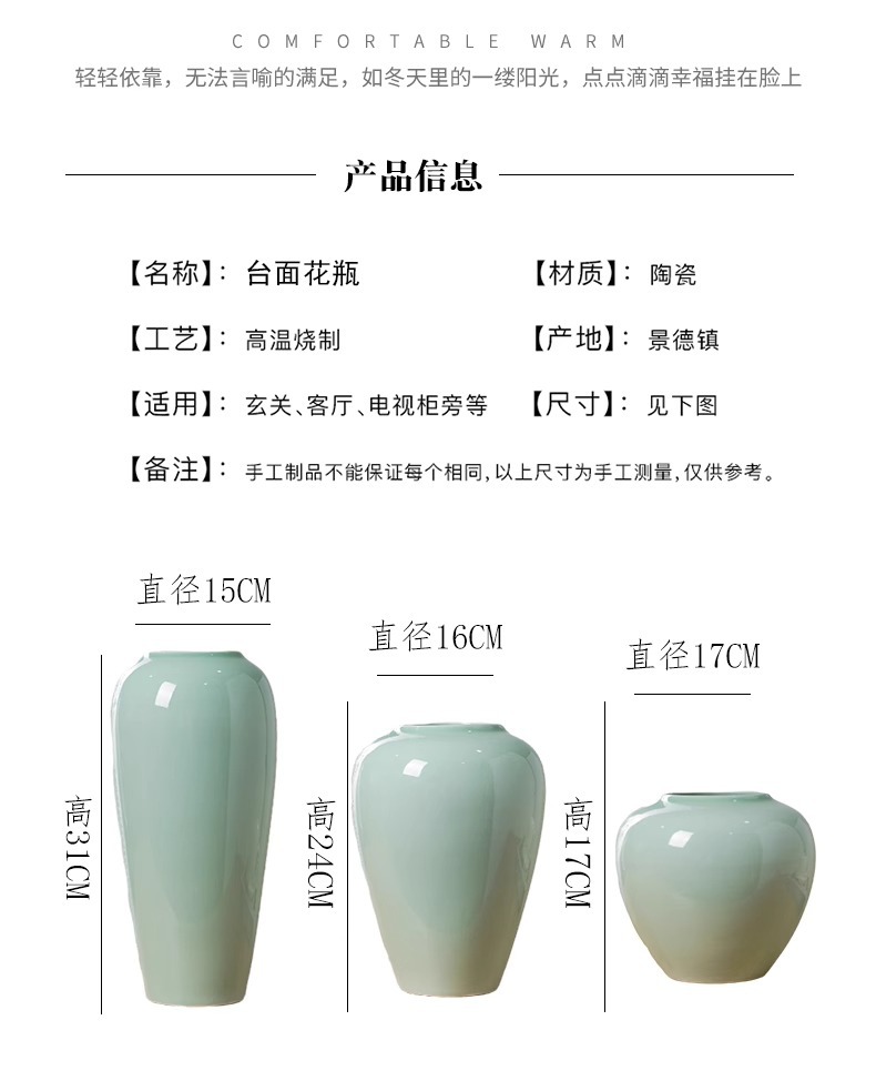 Jingdezhen 세라믹 꽃병 중국 스타일 간단한 데스크탑 수경 꽃병 장식 장식품 거실 입구 꽃병 장식품