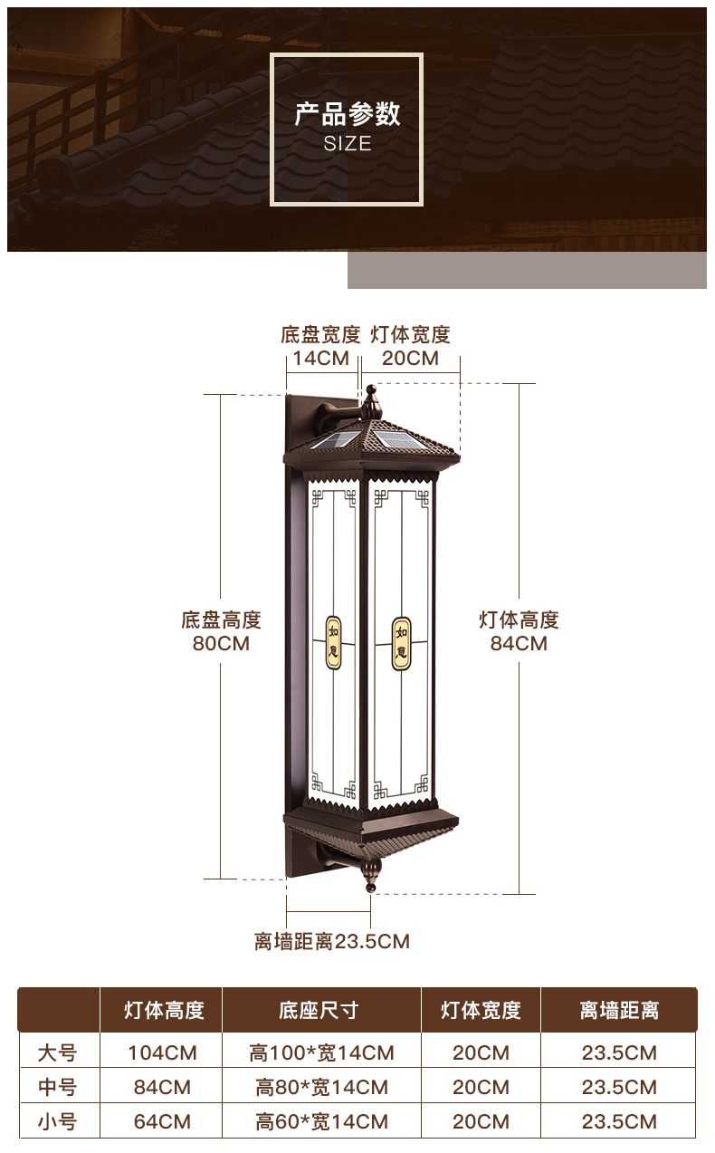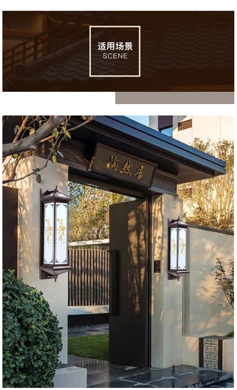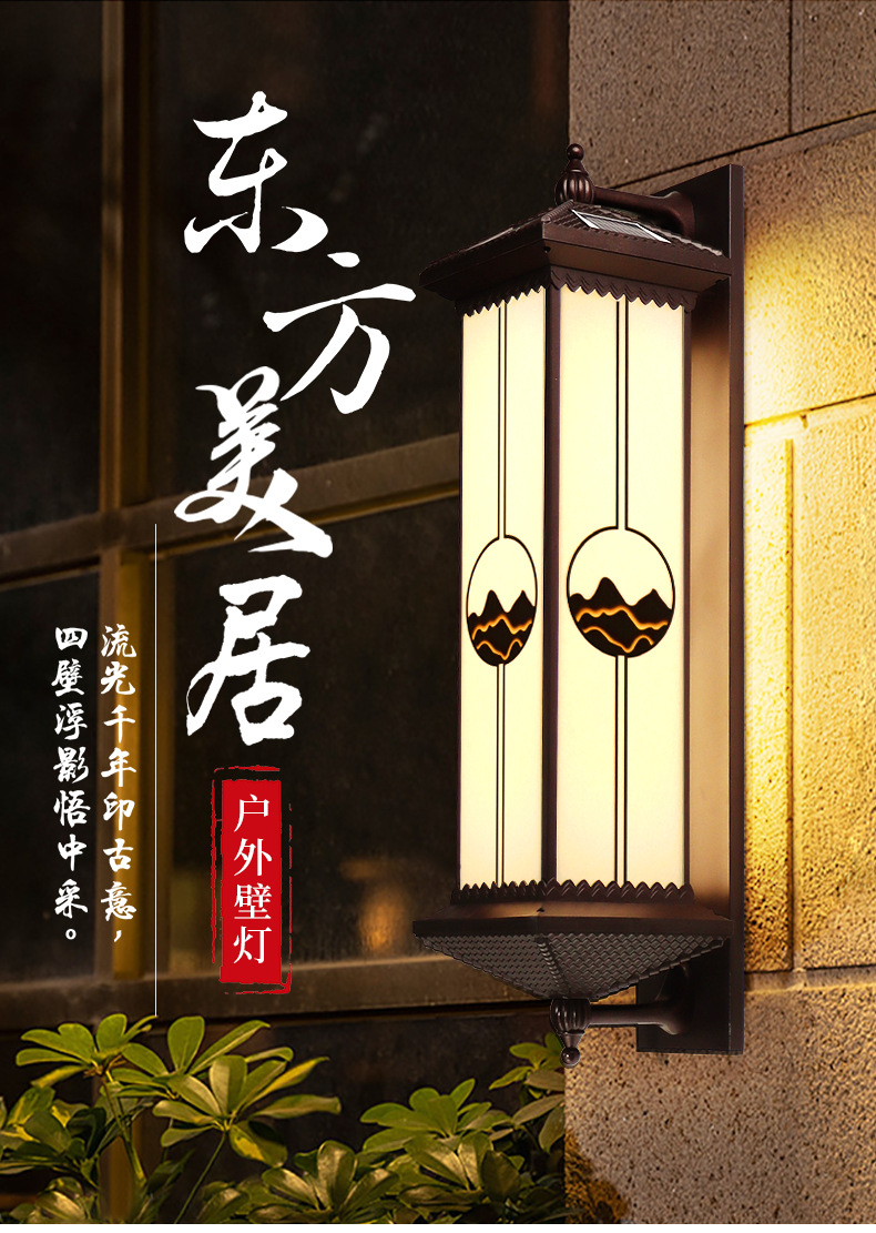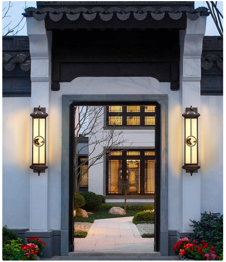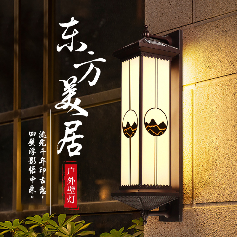 야외 방수 태양 벽 램프 새로운 중국 스타일 테라스 파티오 문 기둥 램프 빌라 입구 발코니 외벽 램프