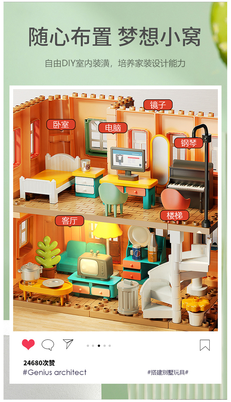 Feile 대형 입자 빌딩 블록 빌라 가구 소품 어린이 놀이 집 조립 빌딩 블록 장난감 액세서리 도매스토어 가기