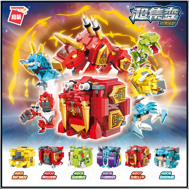 계몽주의 빌딩 블록 기계 짐승 큐브 시리즈 41201 412206 조립 변형 저장 빠른 질병 티라노사우루스 썬더 매직 드래곤