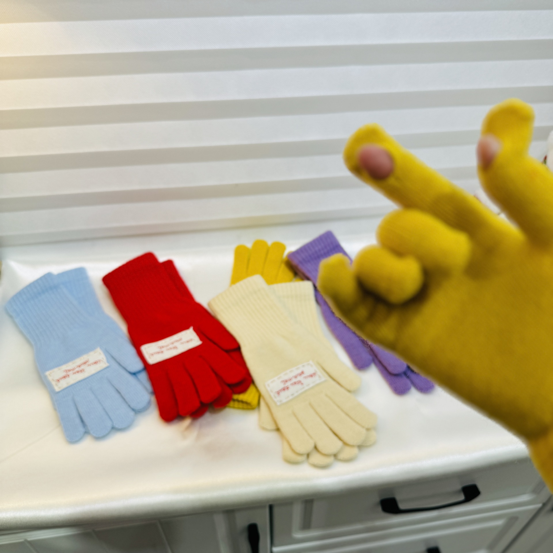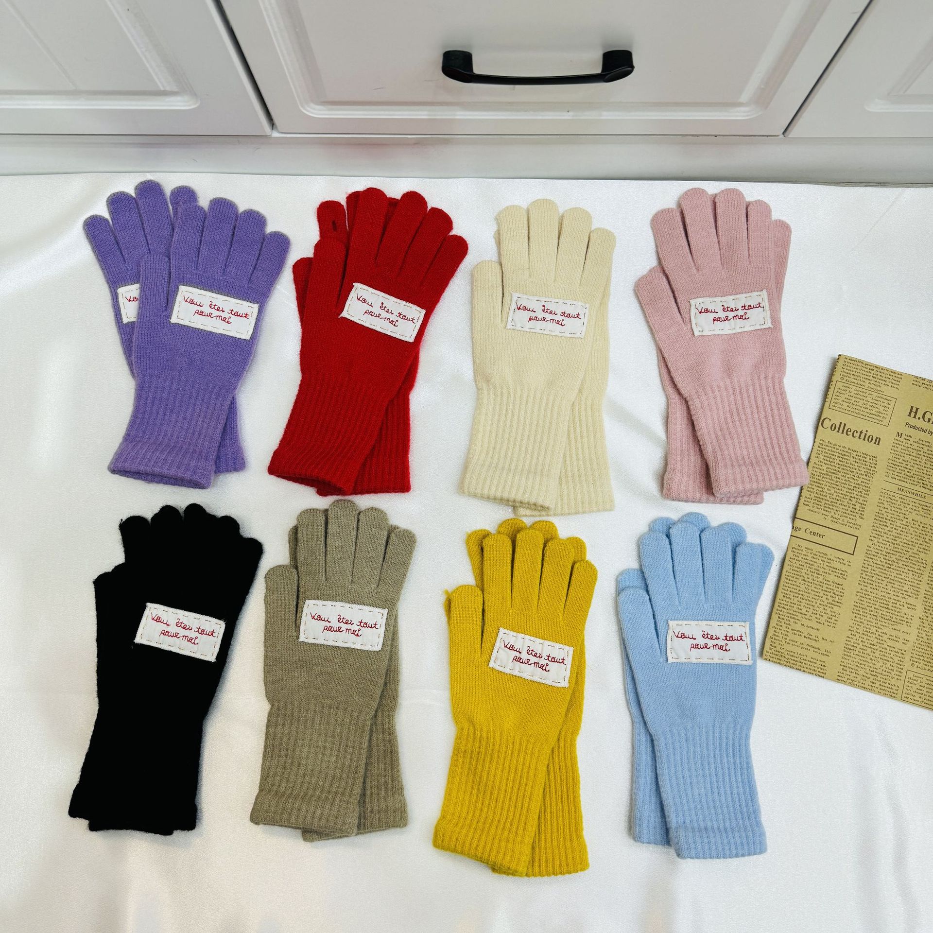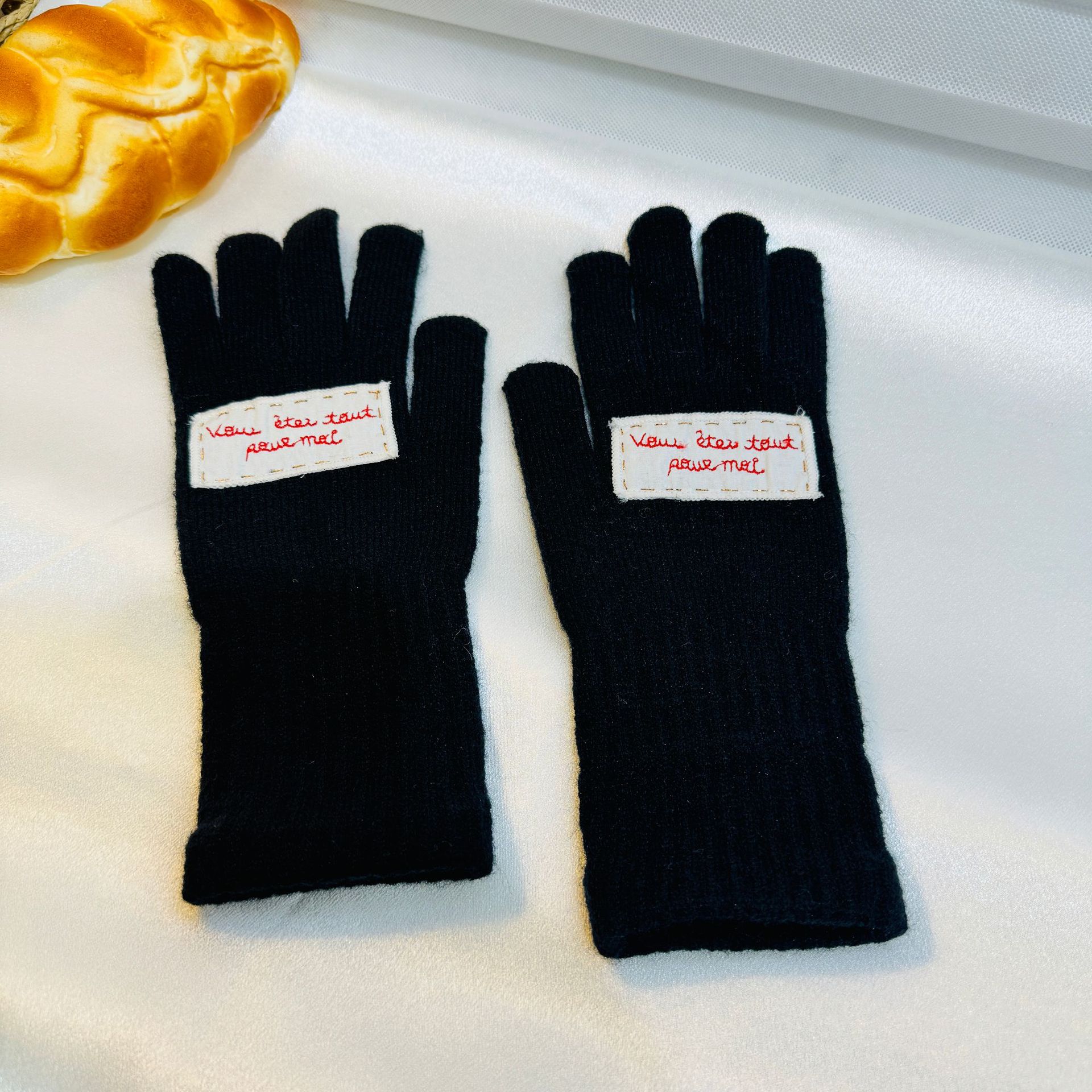 스타일 일본 편지 손가락 터치 스크린 따뜻한 니트 장갑 단색 손가락 누출 양모 가을과 겨울 여성의 두꺼운 사이클링 장갑