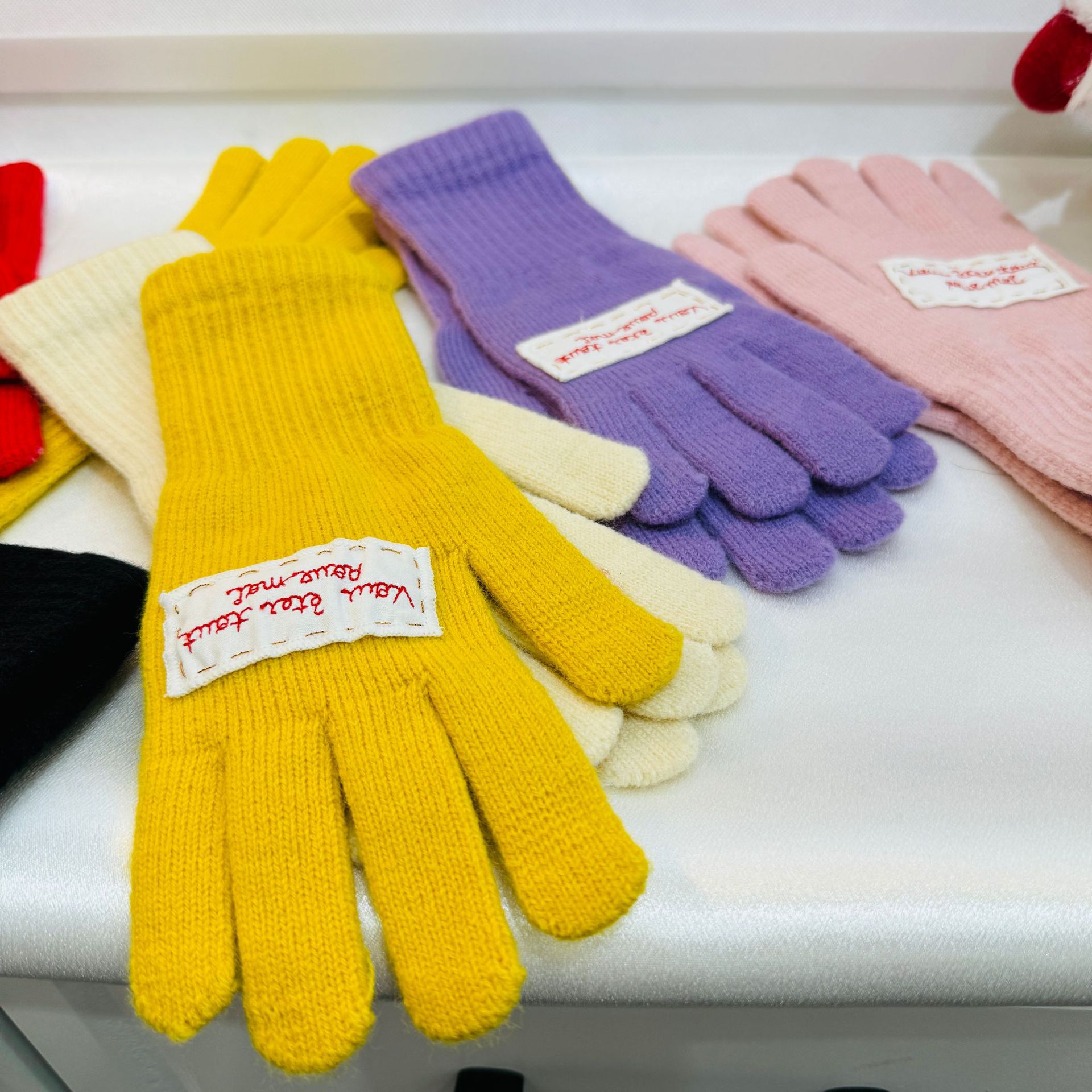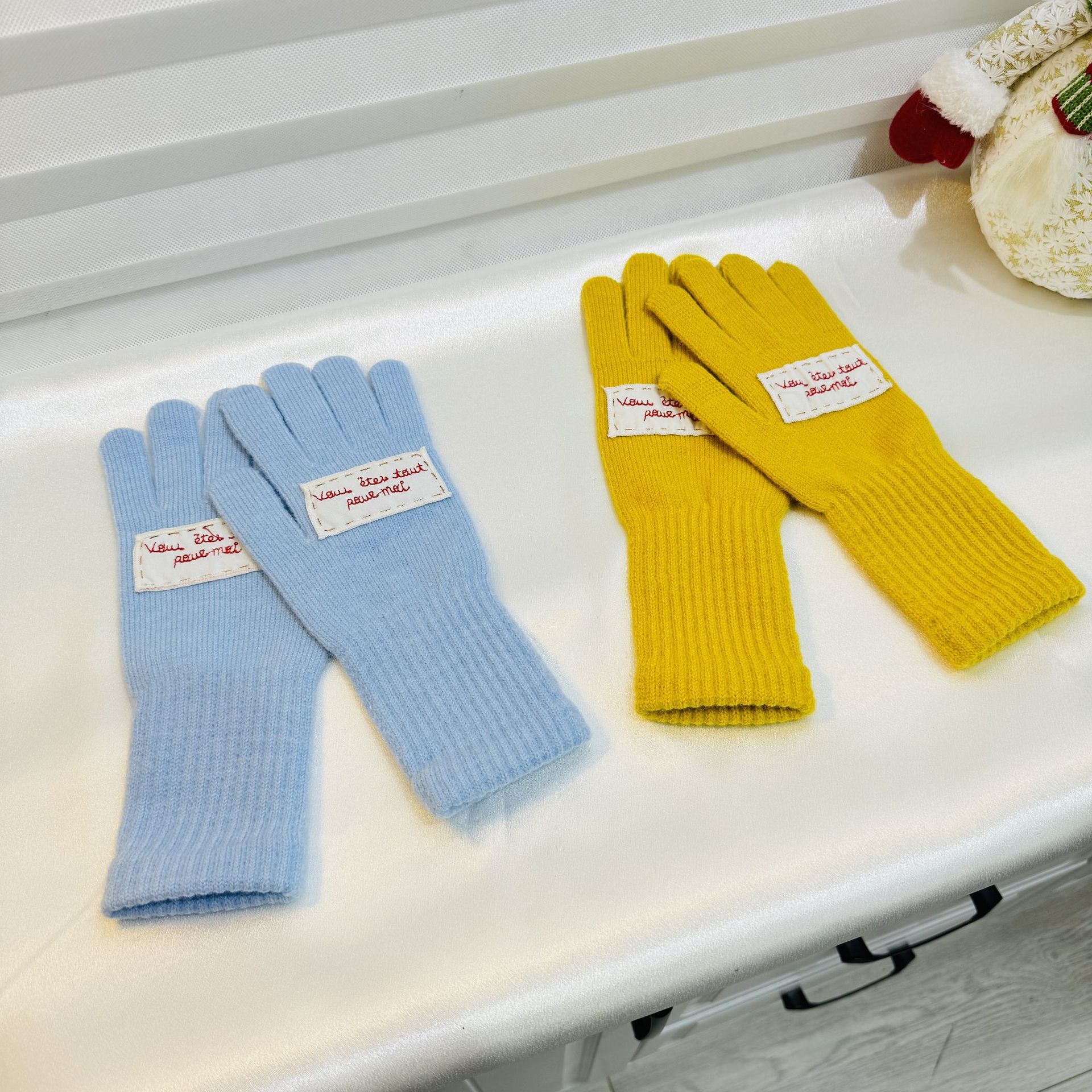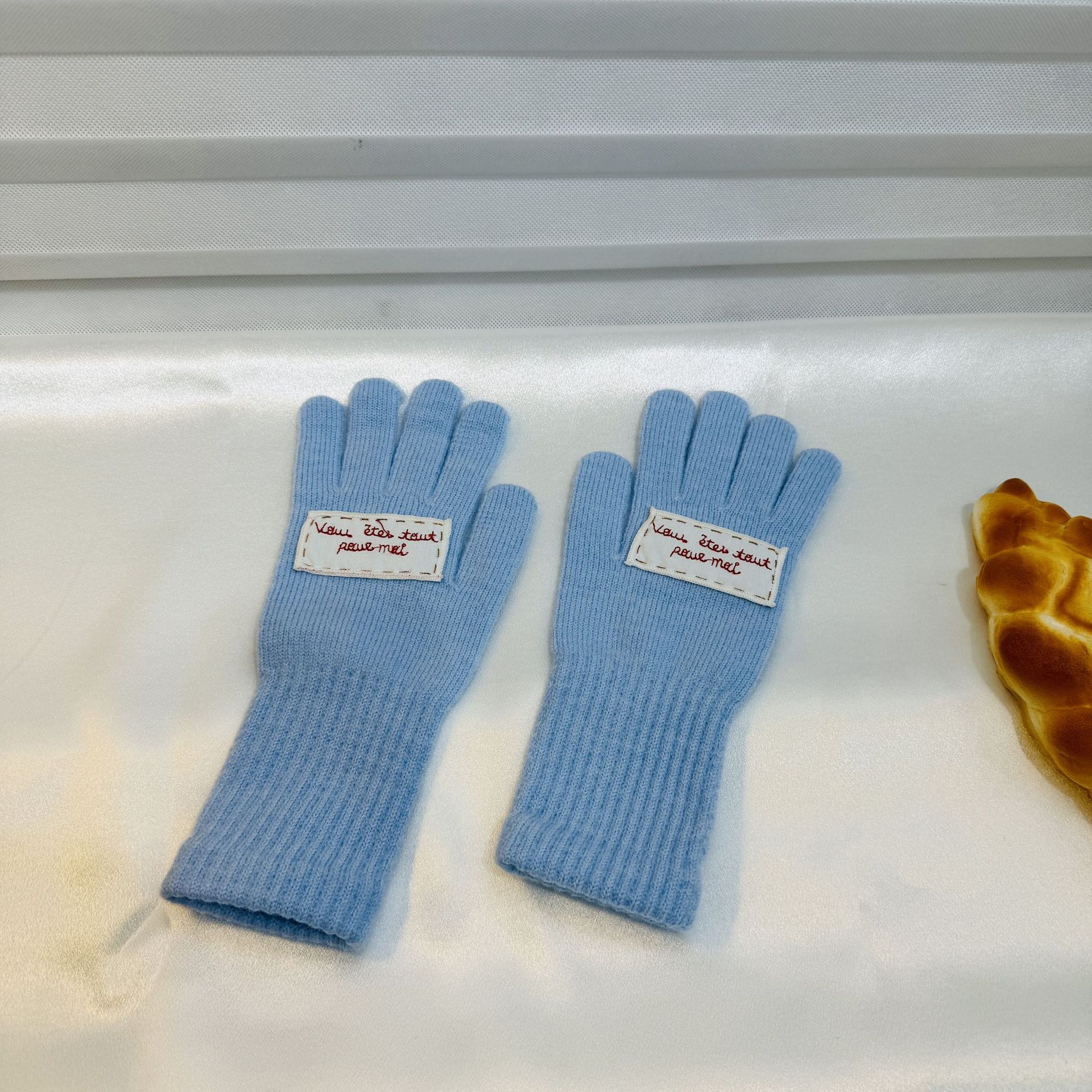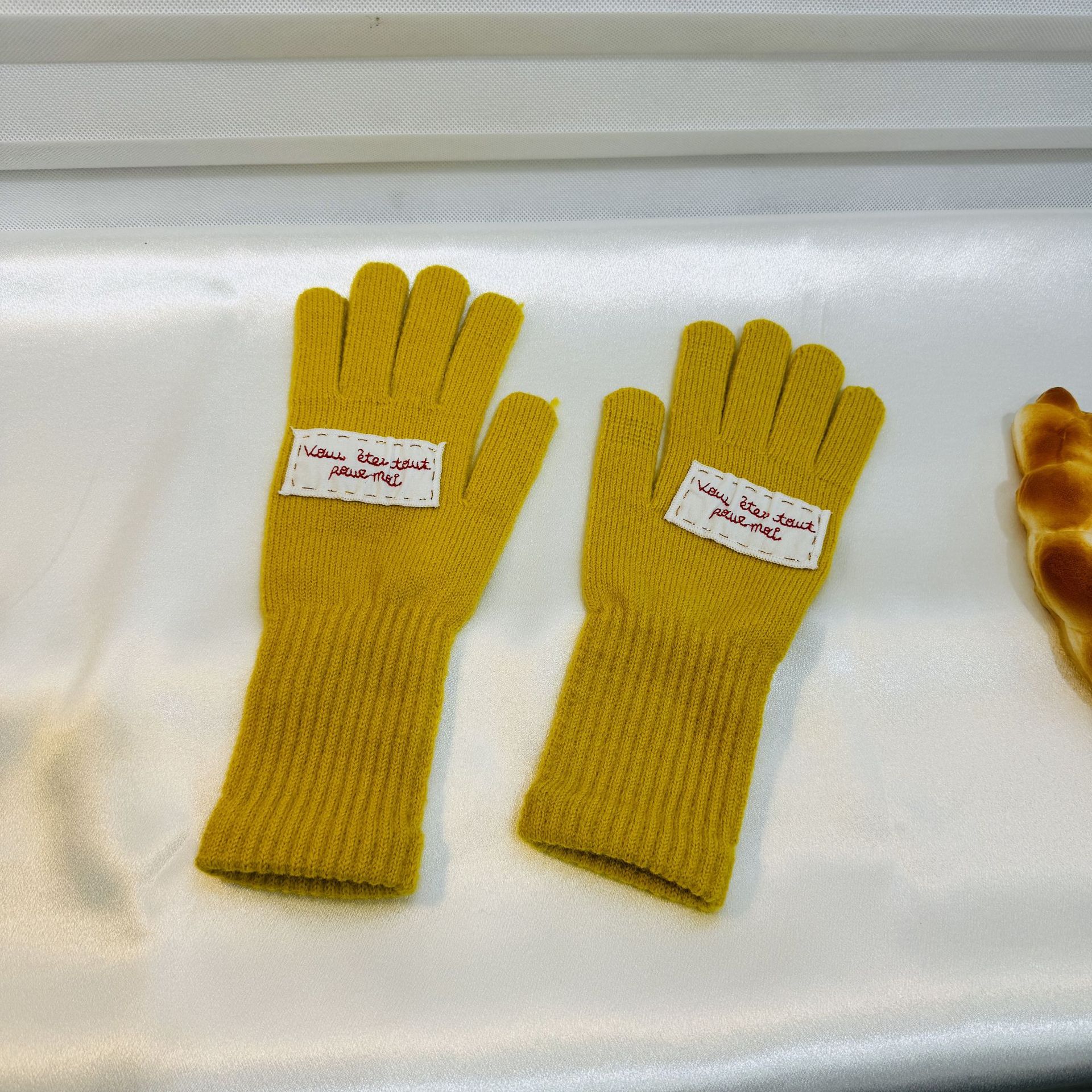 스타일 일본 편지 손가락 터치 스크린 따뜻한 니트 장갑 단색 손가락 누출 양모 가을과 겨울 여성의 두꺼운 사이클링 장갑