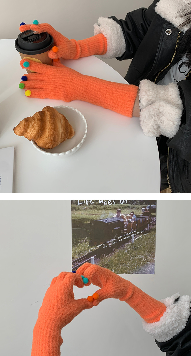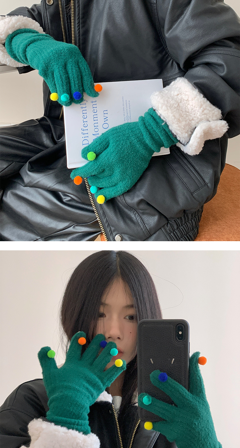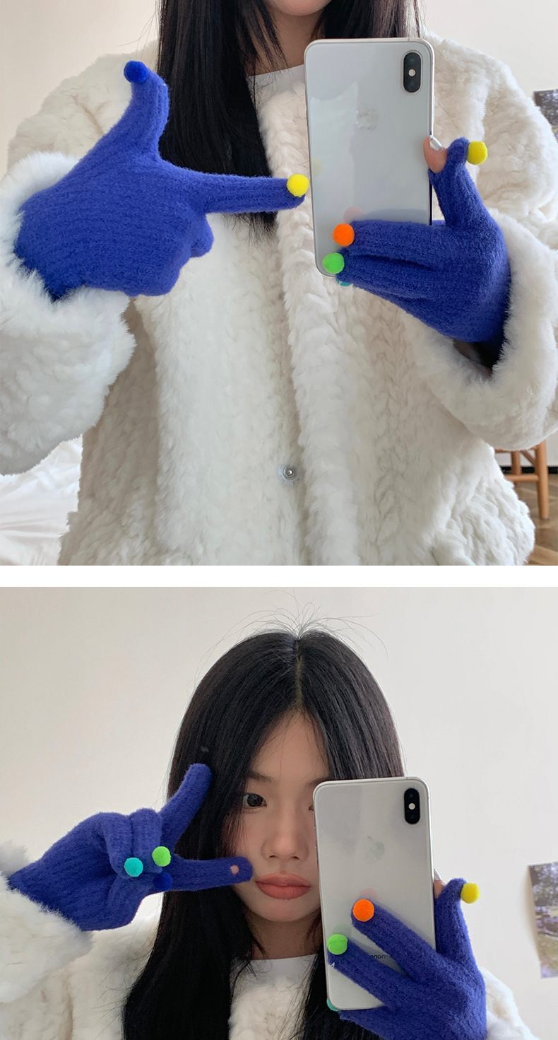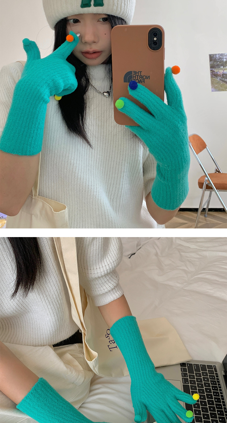 한국 스타일 따뜻한 터치스크린 가능 컬러풀한 털볼 장갑 겨울 여성 귀여운 학생용 자전거 타기 두꺼운 장갑스토어 가기