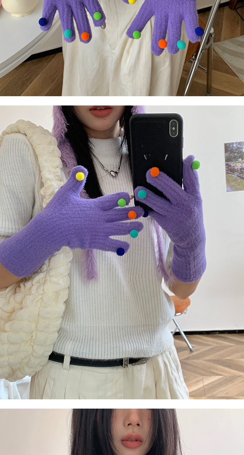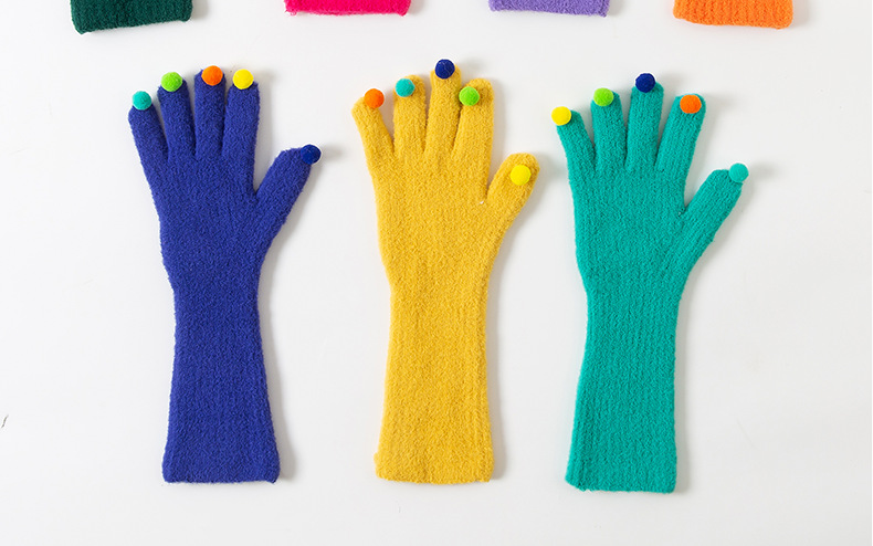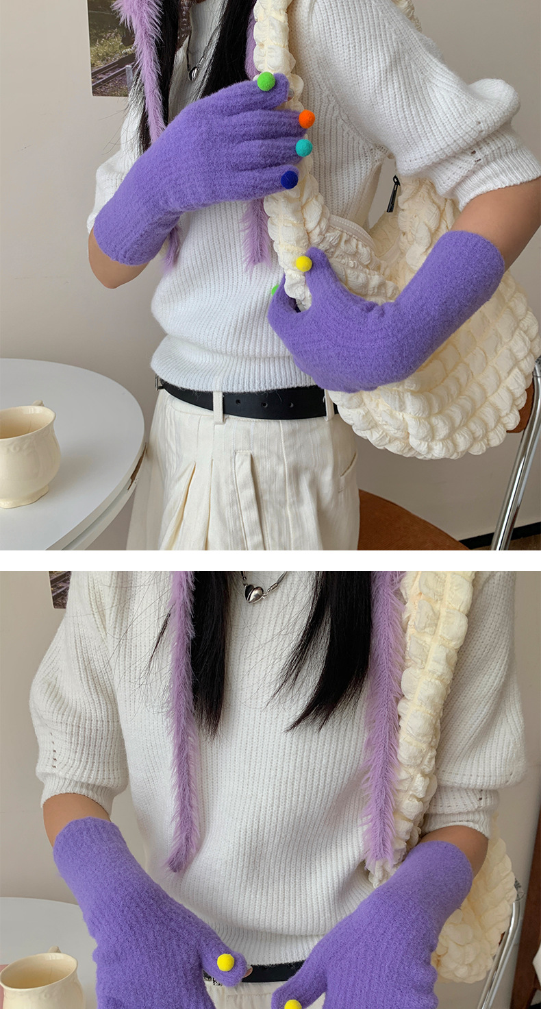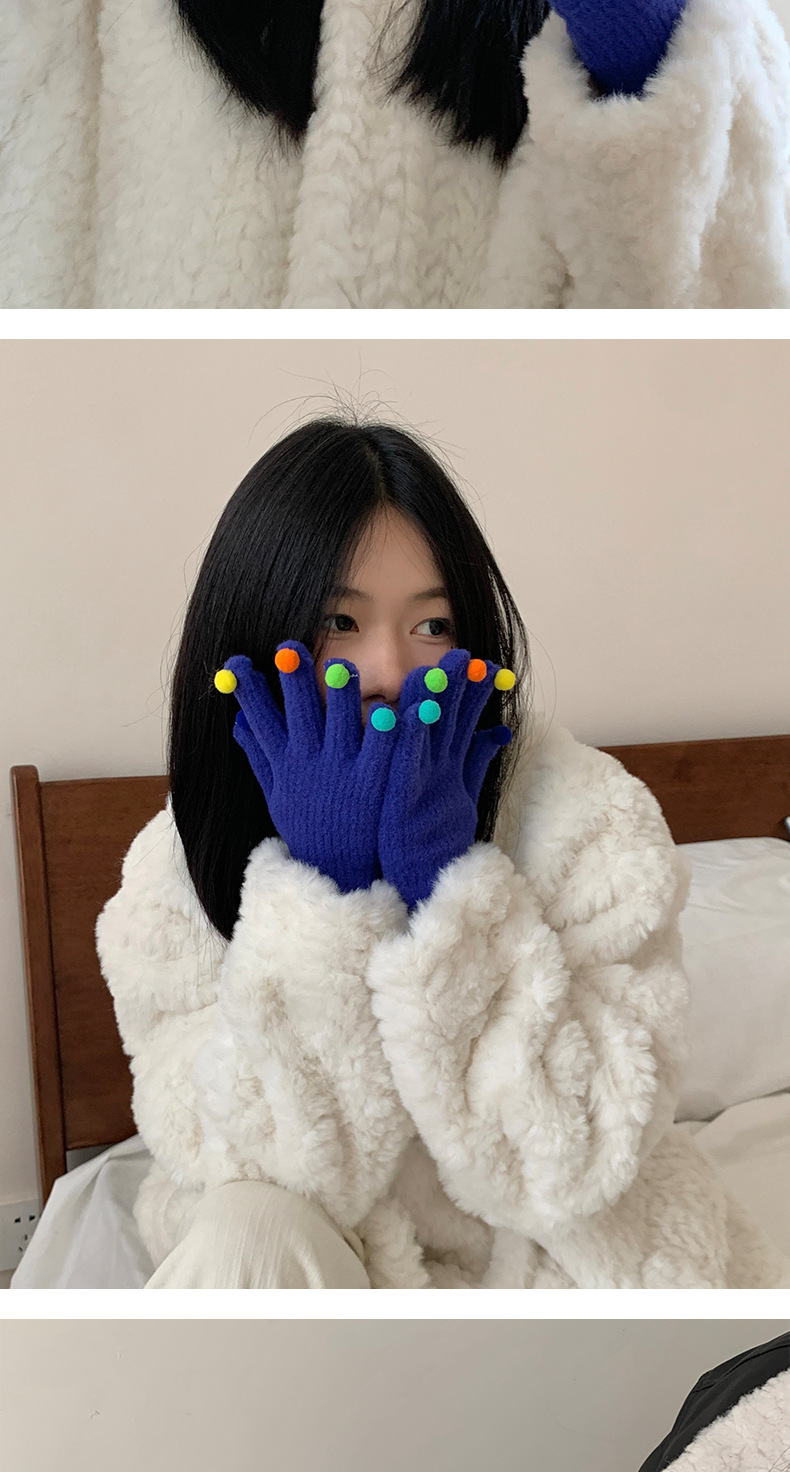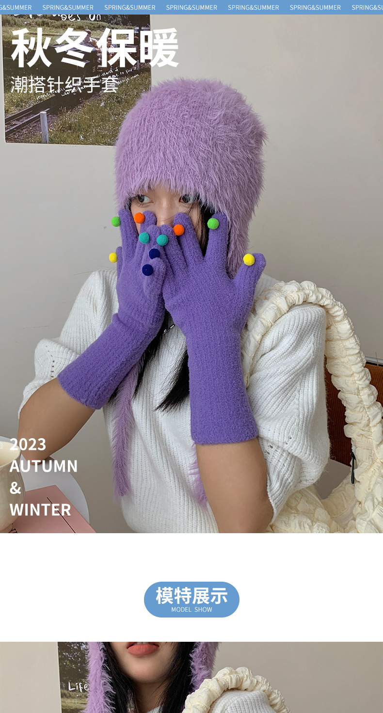 한국 스타일 따뜻한 터치스크린 가능 컬러풀한 털볼 장갑 겨울 여성 귀여운 학생용 자전거 타기 두꺼운 장갑스토어 가기