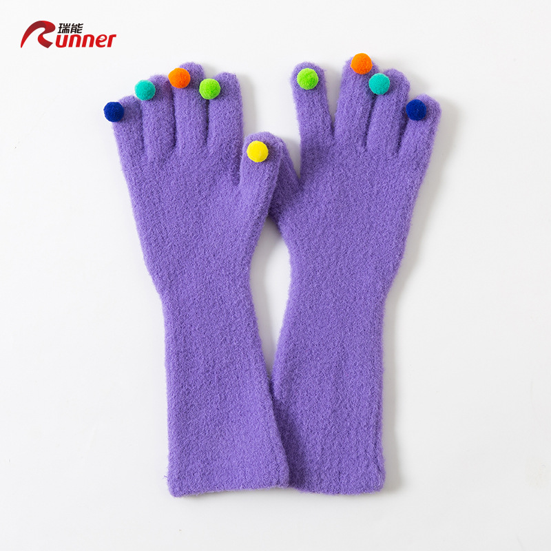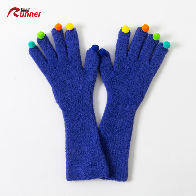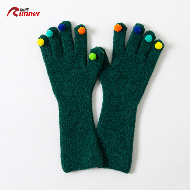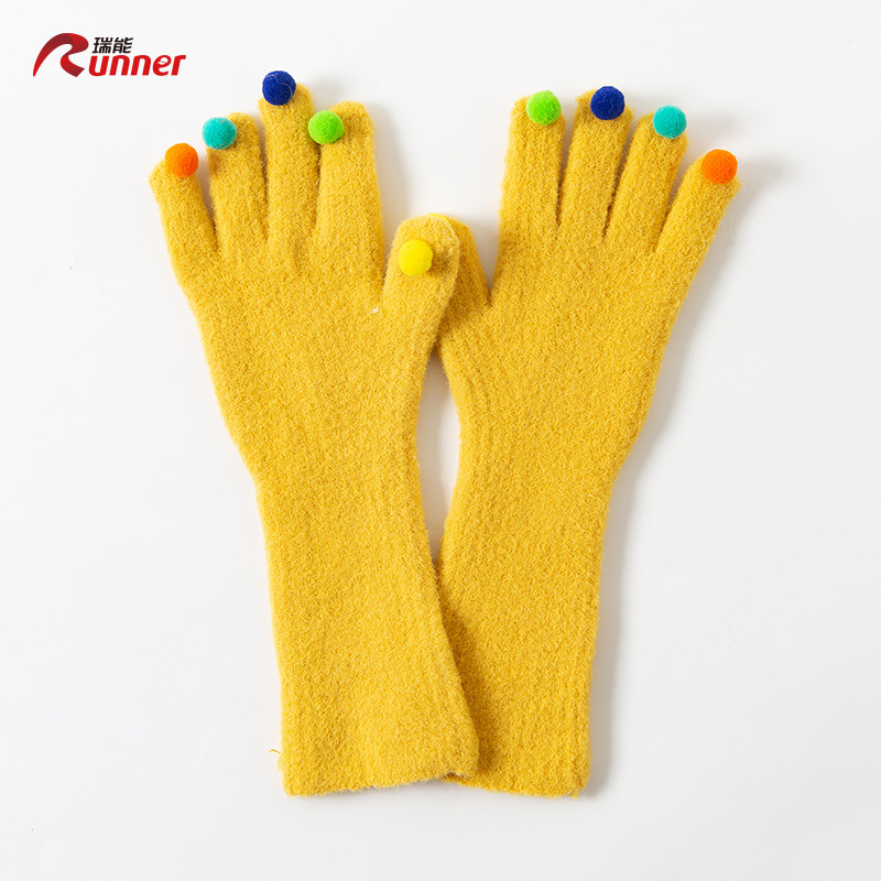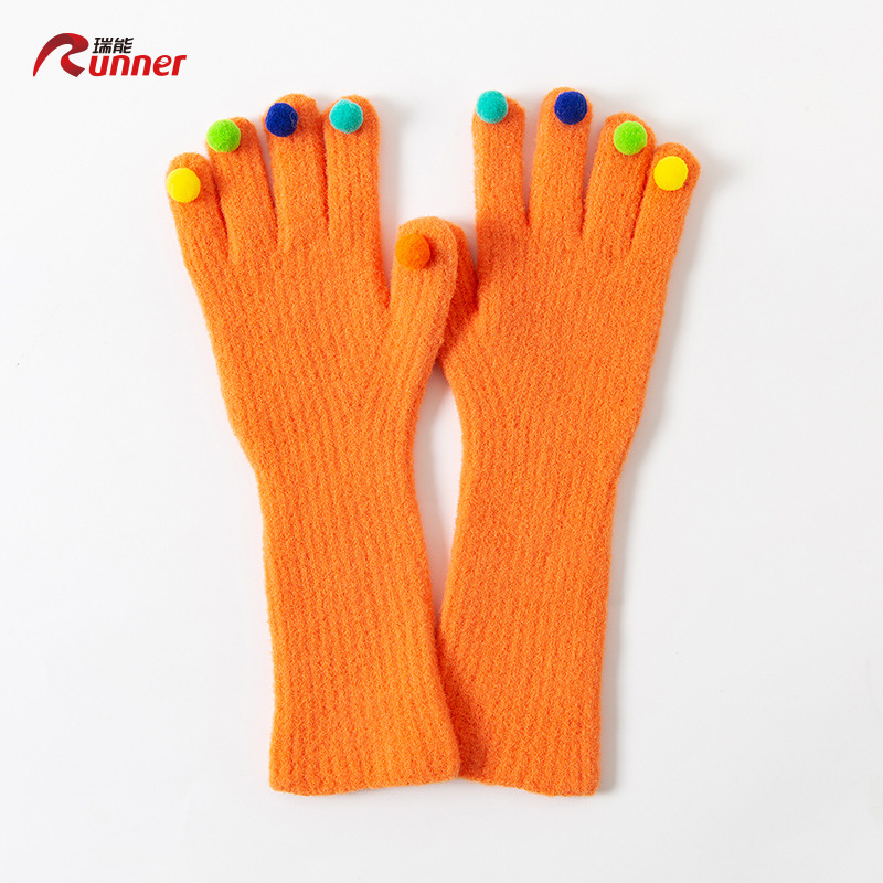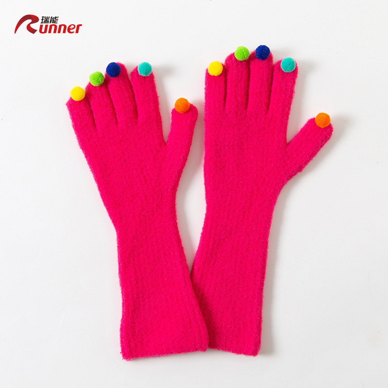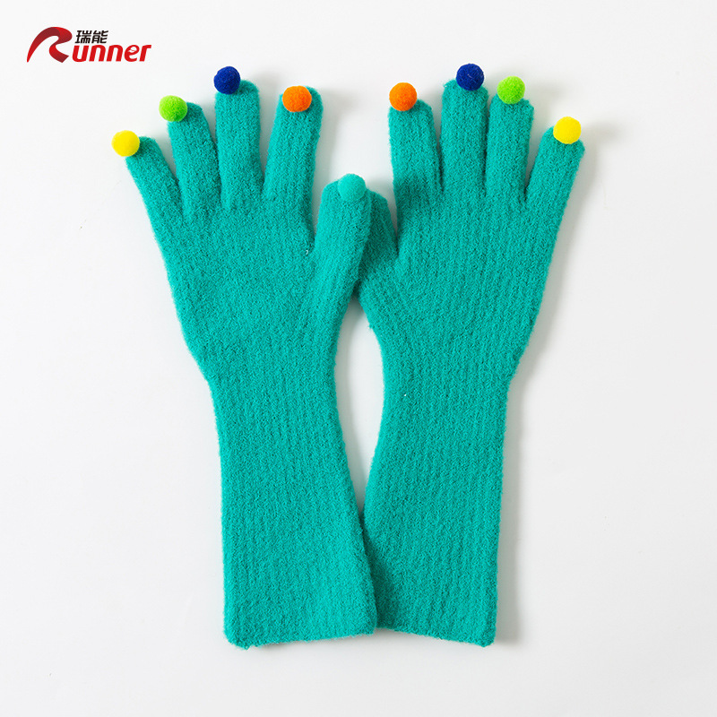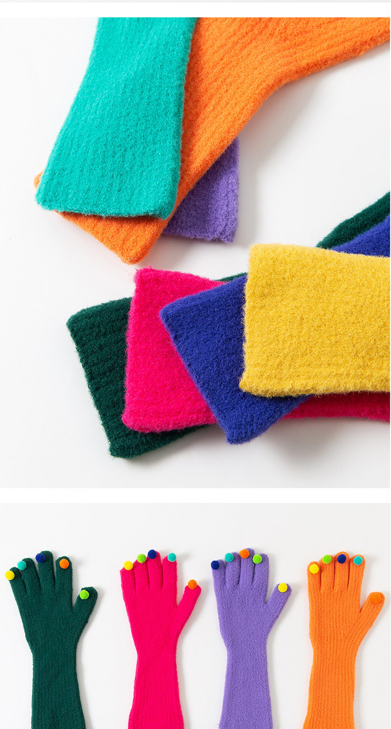 한국 스타일 따뜻한 터치스크린 가능 컬러풀한 털볼 장갑 겨울 여성 귀여운 학생용 자전거 타기 두꺼운 장갑