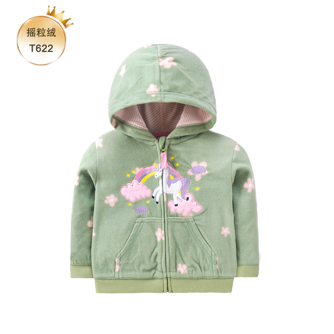가을과 겨울 어린이 코트 동물 자수 코트 북극 양털 따뜻한 스웨터 지퍼 아기 후드 스웨터 카디건스토어 가기