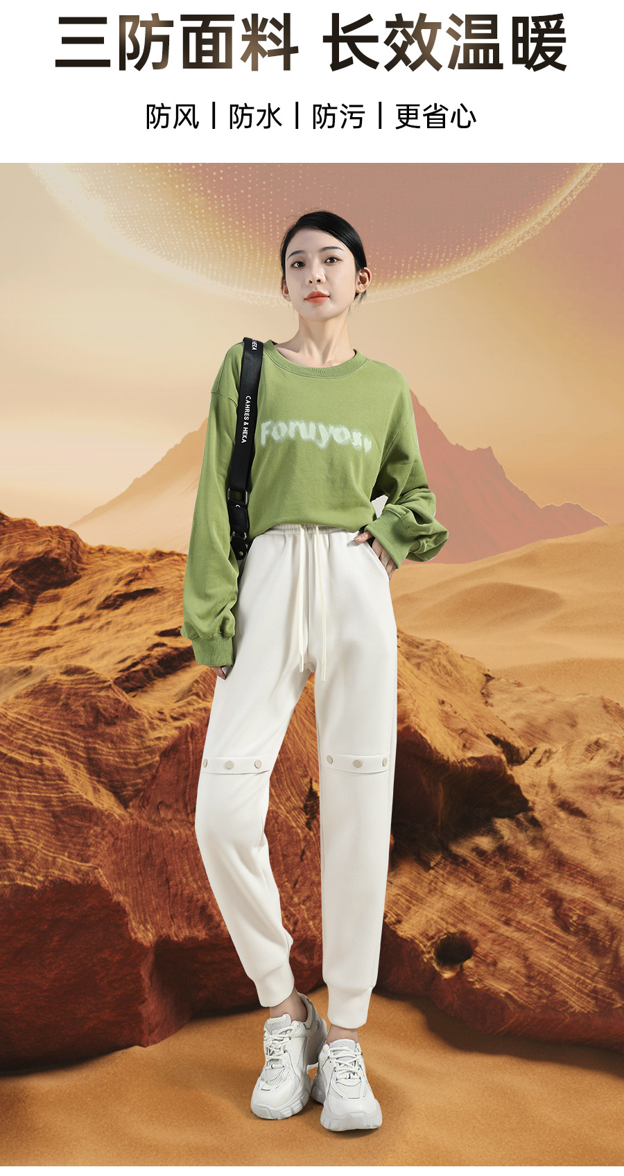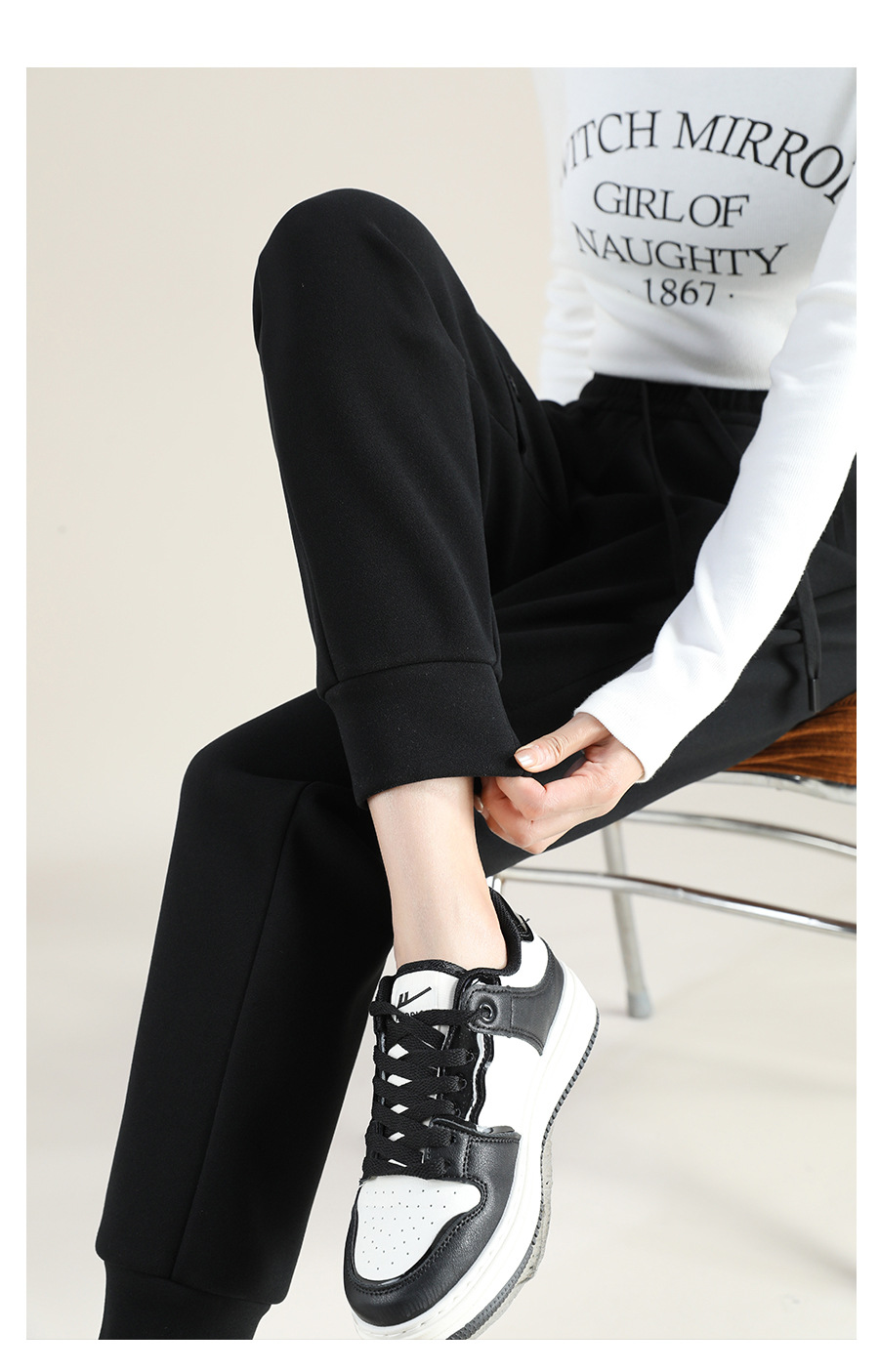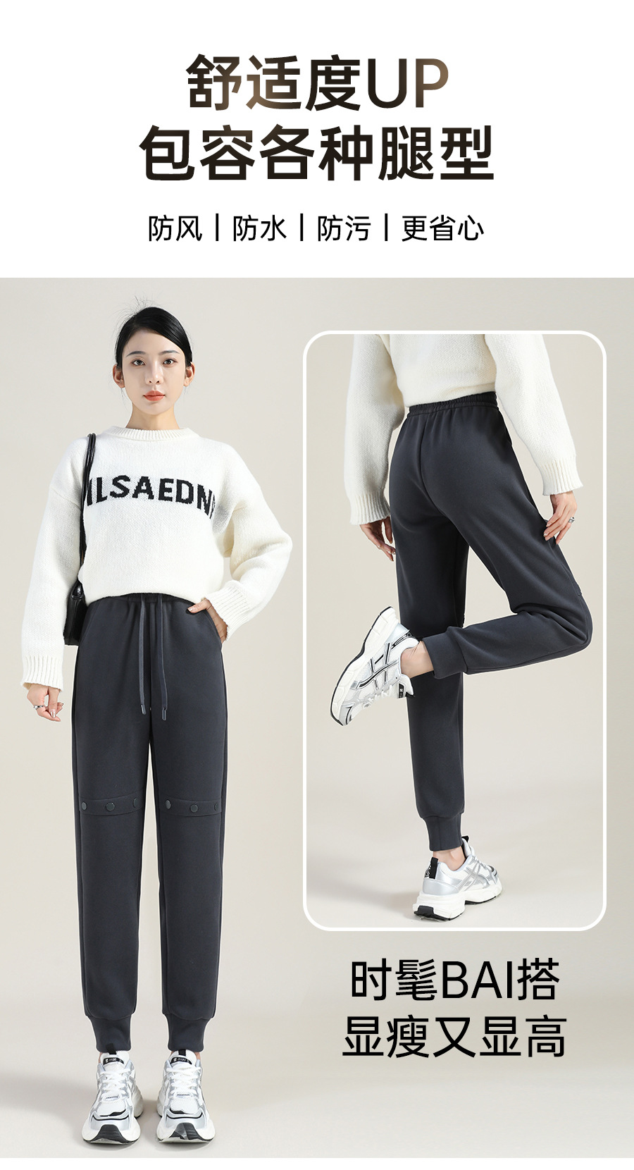 가을과 겨울 새로운 두꺼운 방풍 바지 여성용 플러스 사이즈 느슨한 캐주얼 바지 기모 따뜻한 스웨트 팬츠 높은 허리 3 방풍 바지스토어 가기