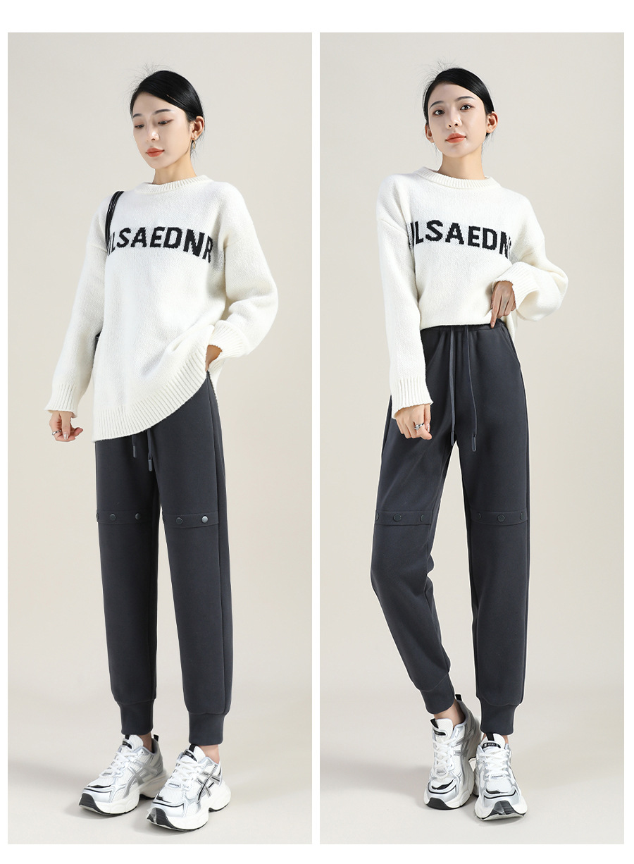 가을과 겨울 새로운 두꺼운 방풍 바지 여성용 플러스 사이즈 느슨한 캐주얼 바지 기모 따뜻한 스웨트 팬츠 높은 허리 3 방풍 바지