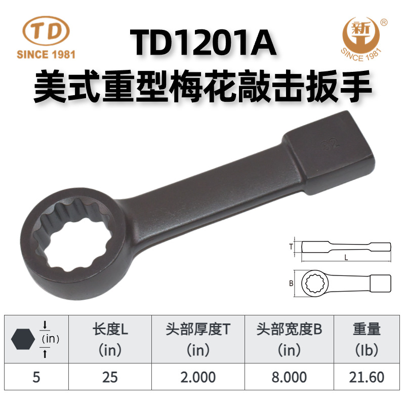 티안다 Xingong 노크 렌치 싱글 헤드 스트레이트 핸들 렌치 아메리칸 헤비 토크 노크 렌치 TD1201A