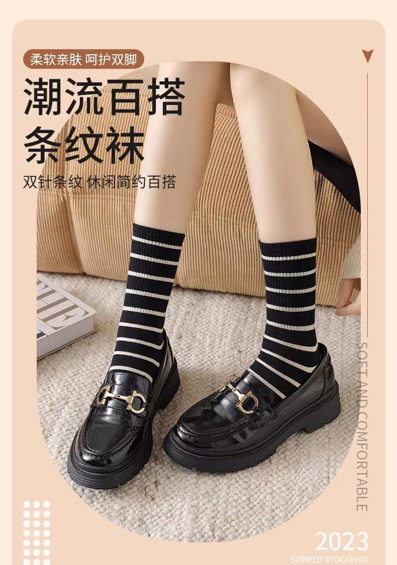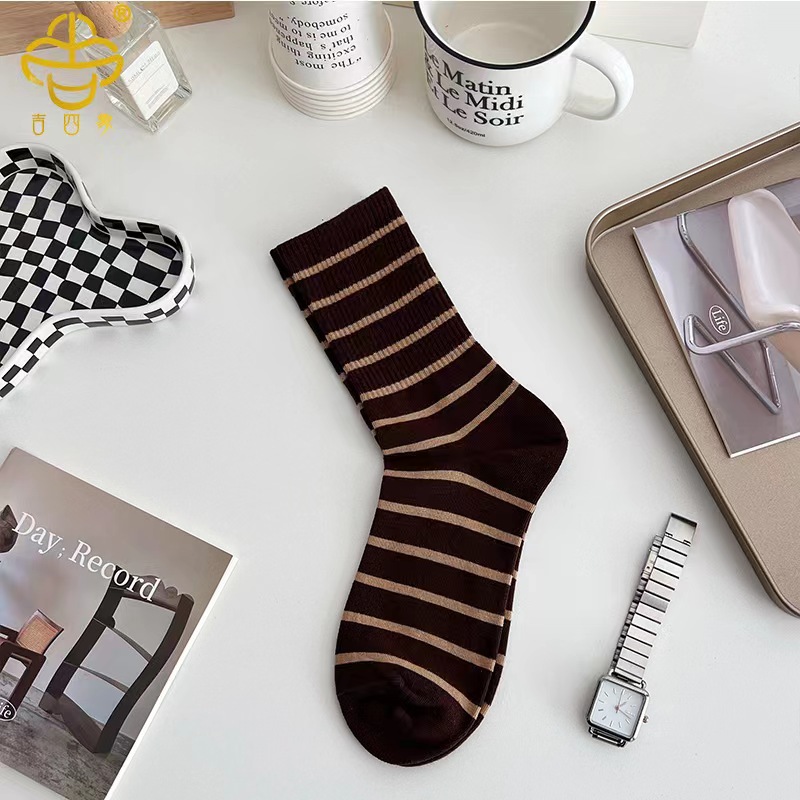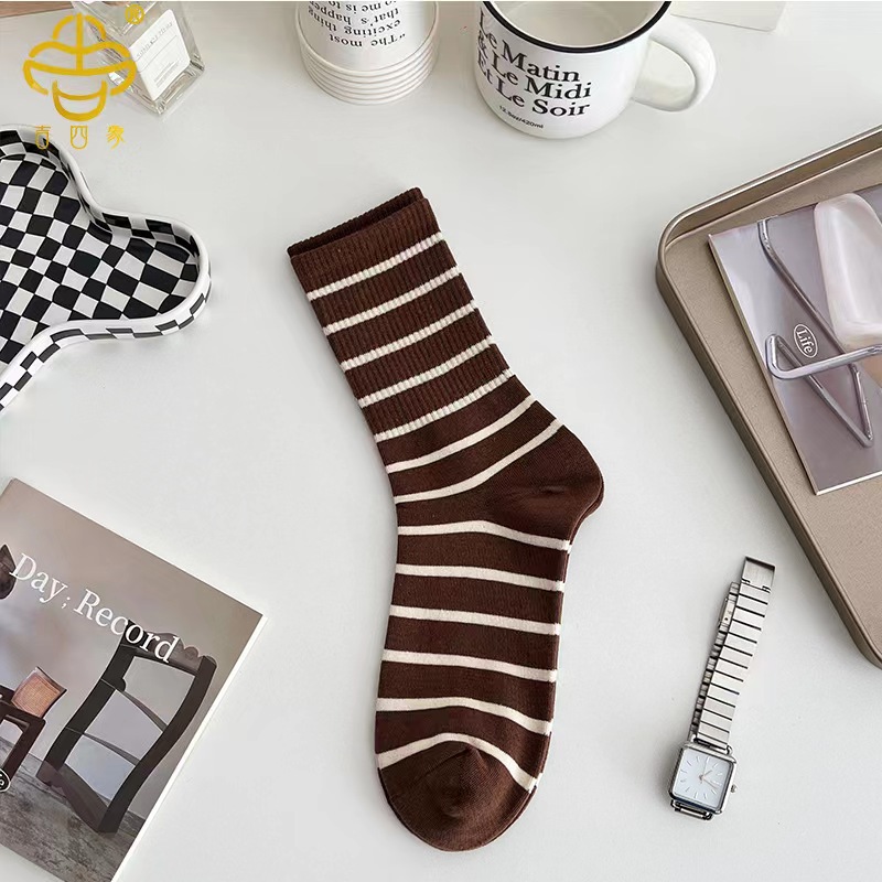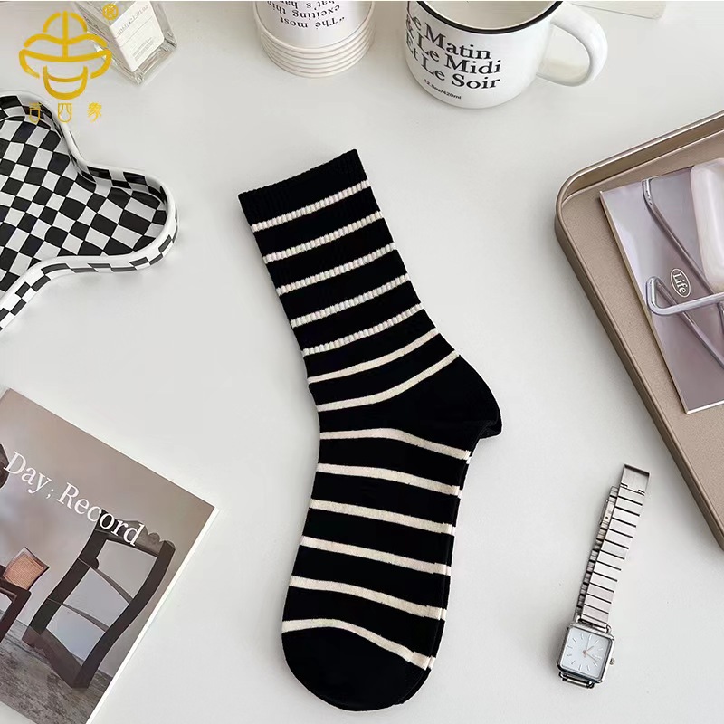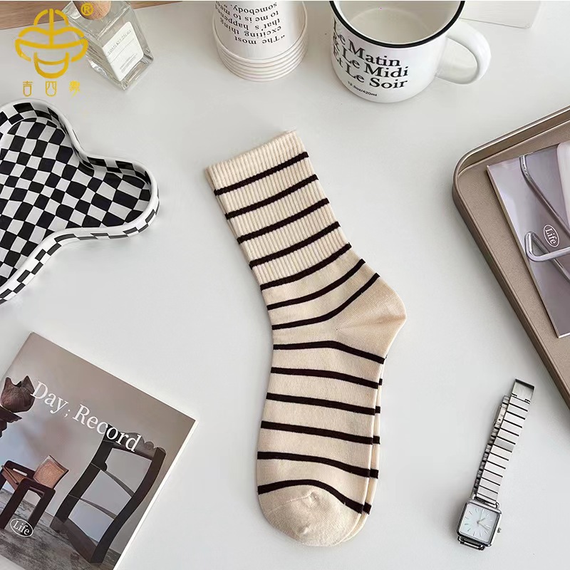 스트라이프 양말 어린이 가을과 겨울 면 스포츠 중간 길이 양말 오버웨어 모든 경기 패션 학생 간단한 한국식 스타킹