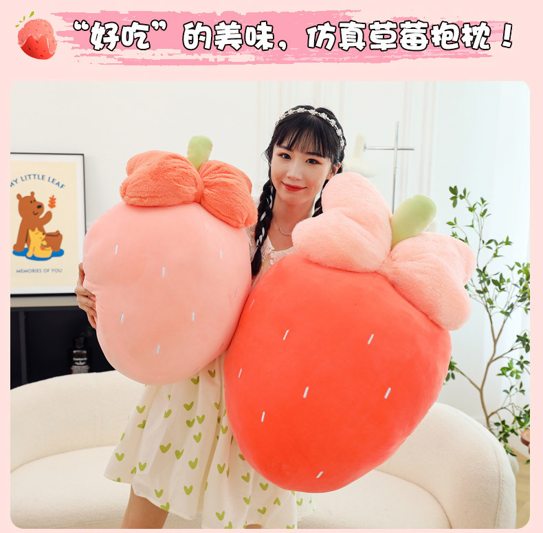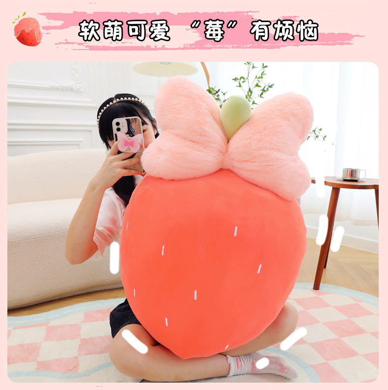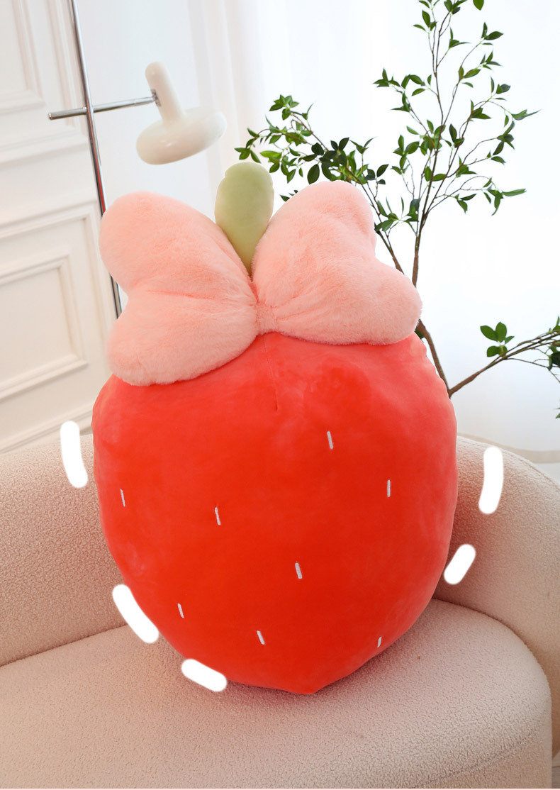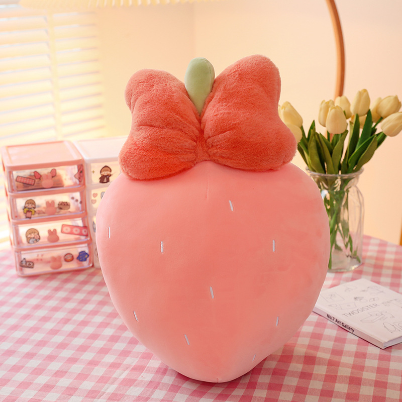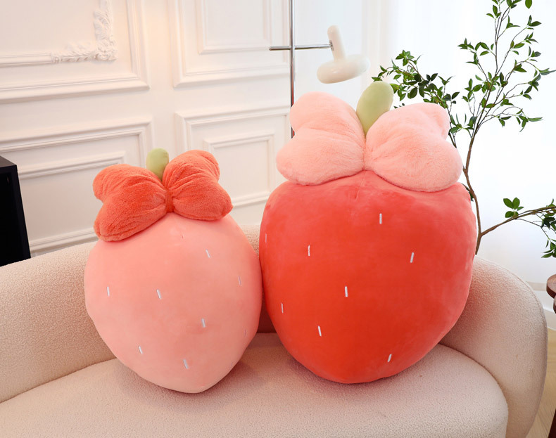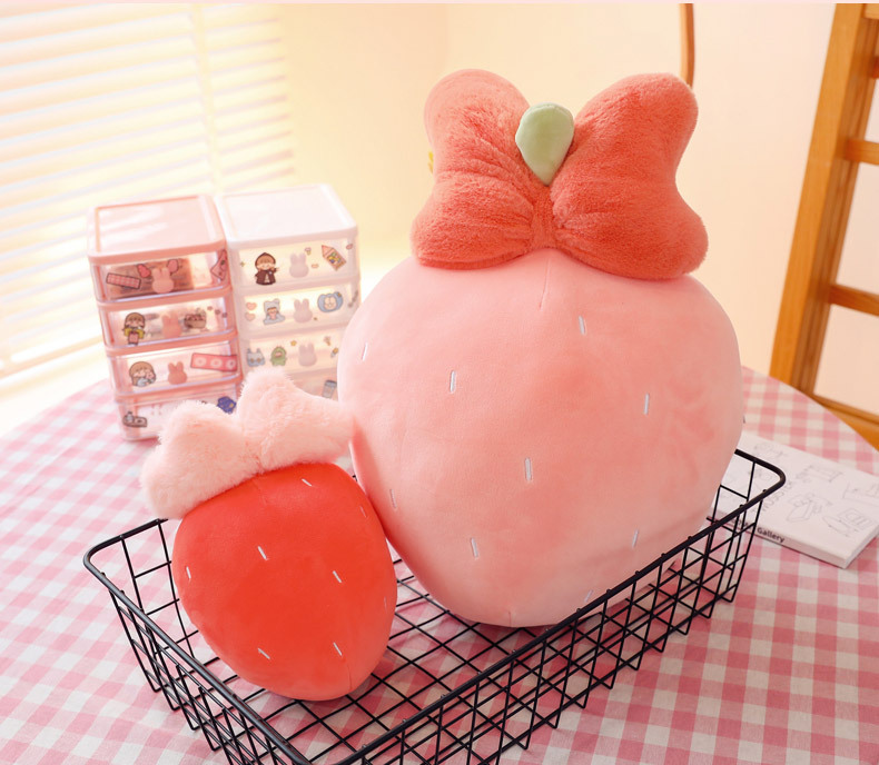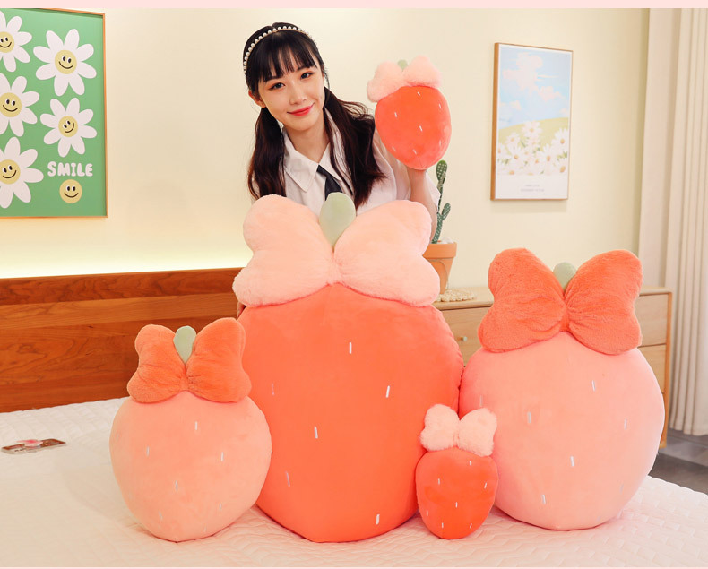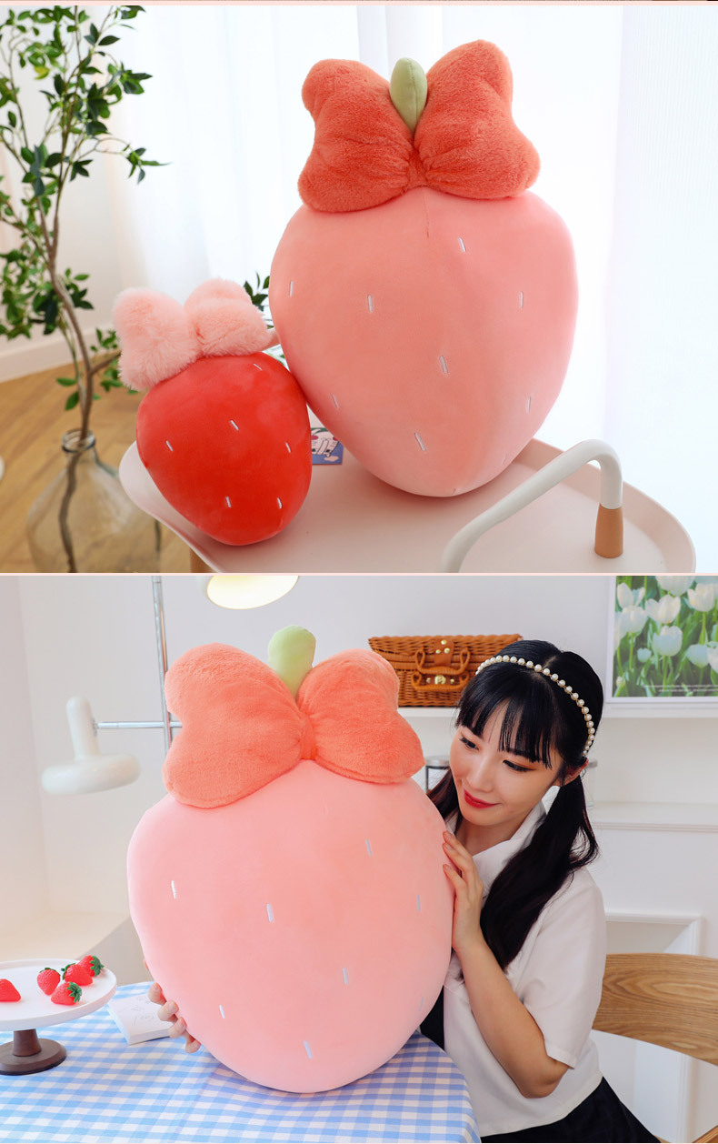 만화 딸기 베개, 리본 장식 인형, 귀여운 인형뽑기 기계용 봉제인형, 작은 사이즈 인형 도매스토어 가기