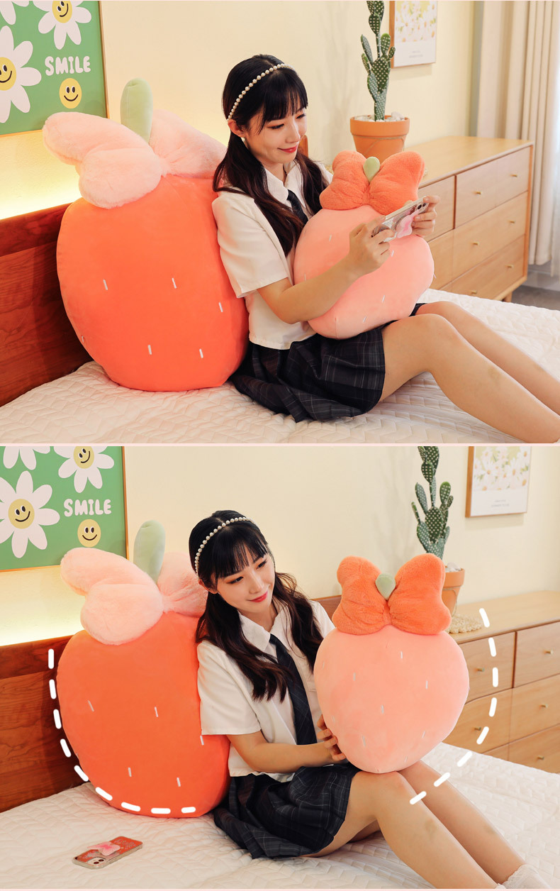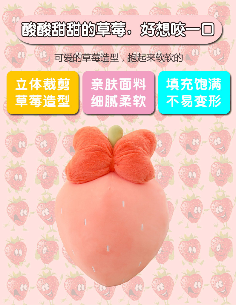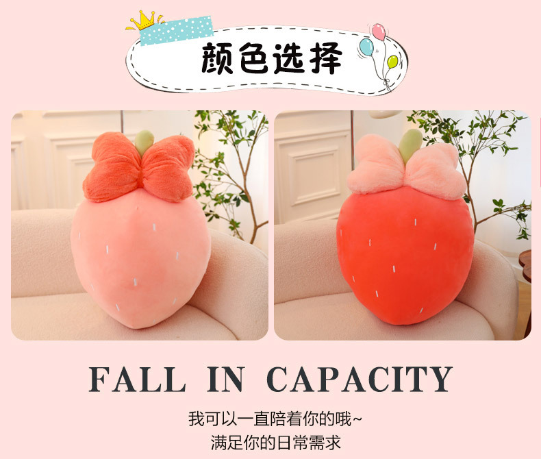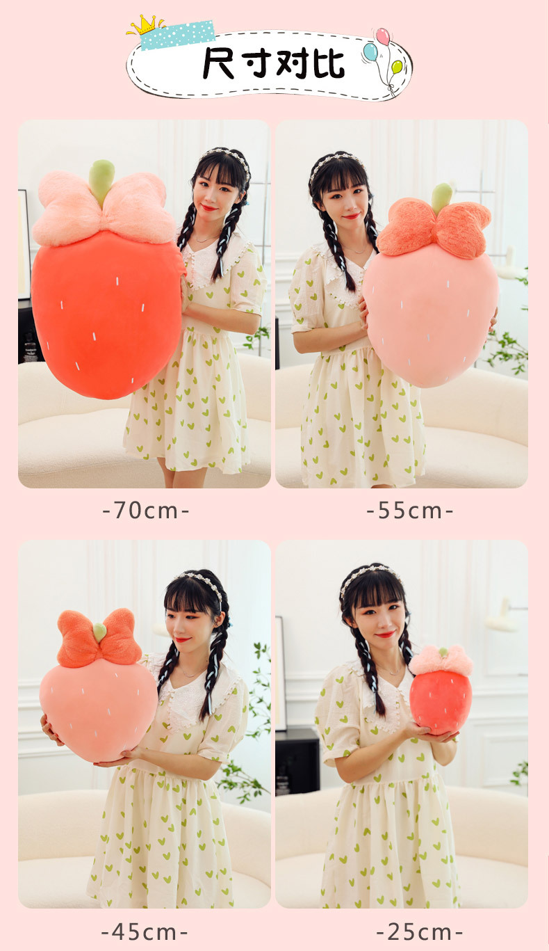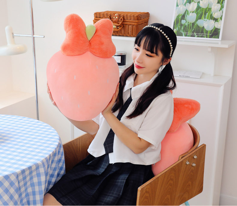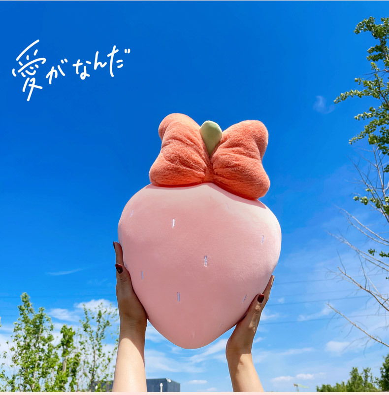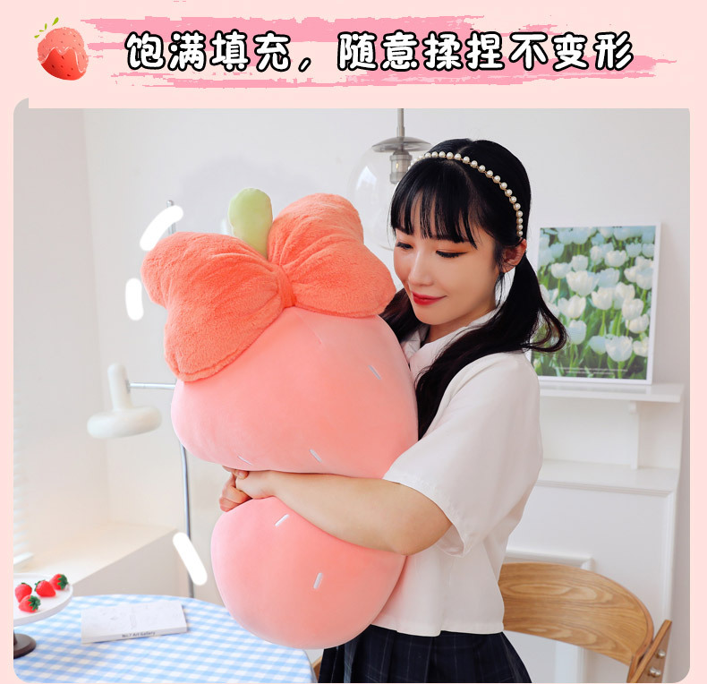 만화 딸기 베개, 리본 장식 인형, 귀여운 인형뽑기 기계용 봉제인형, 작은 사이즈 인형 도매스토어 가기