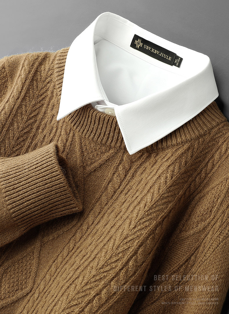 기계 빨 수 있는 100 양 스웨터 남자의 크루넥 스웨터 가을과 겨울 새로운 스타일 캐주얼 따뜻한 두꺼운 베이스 셔츠 유행