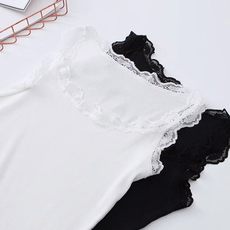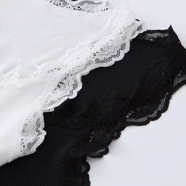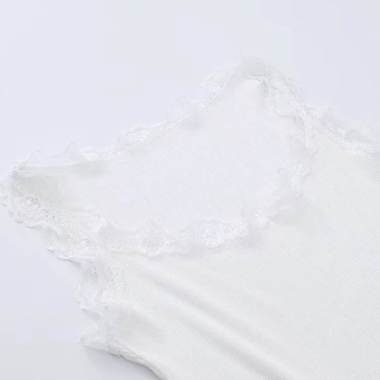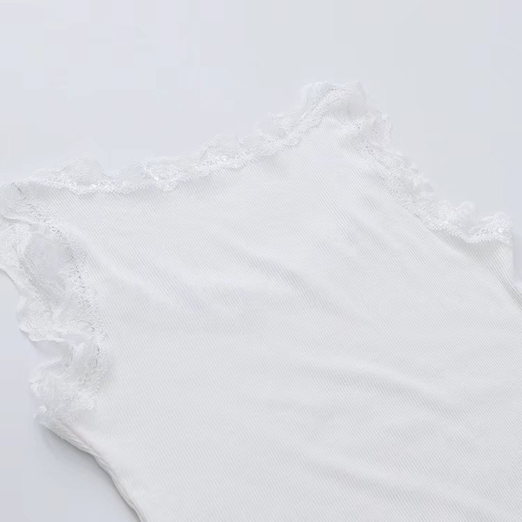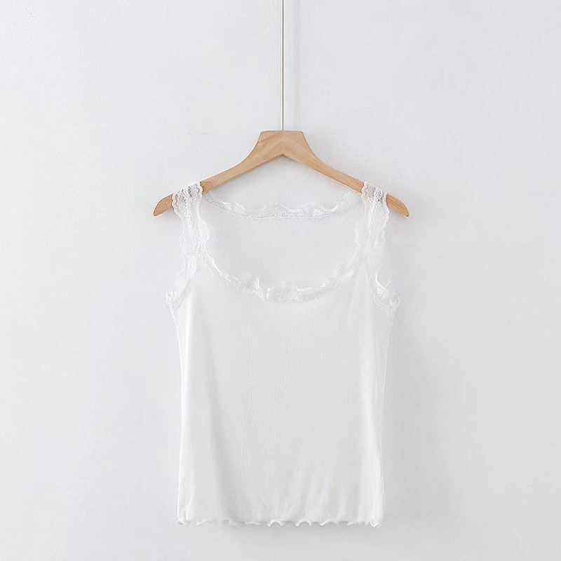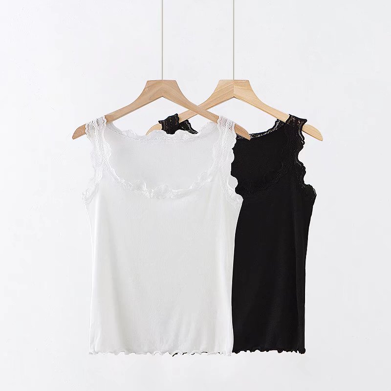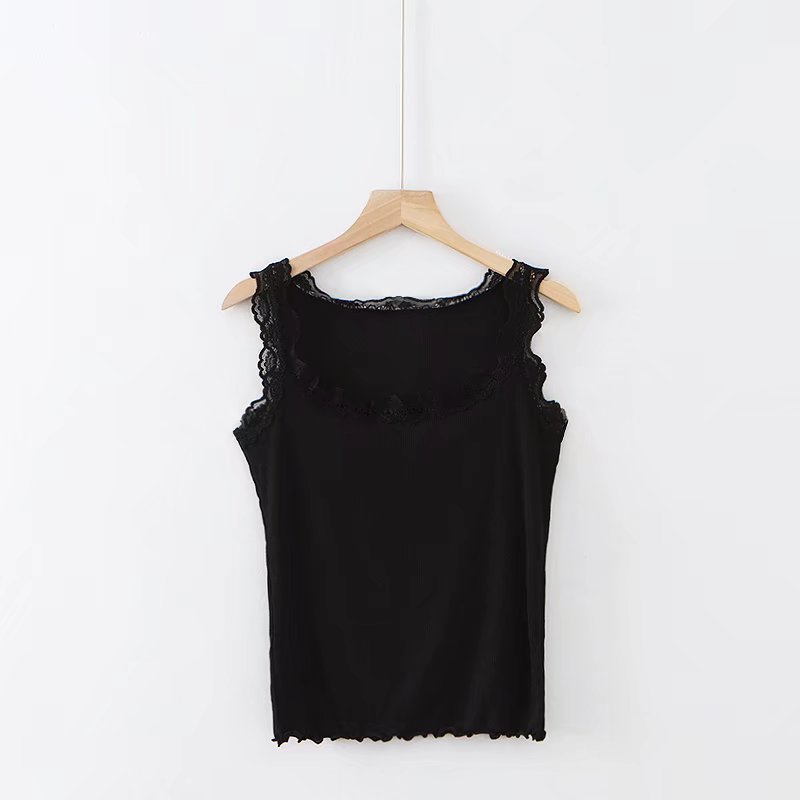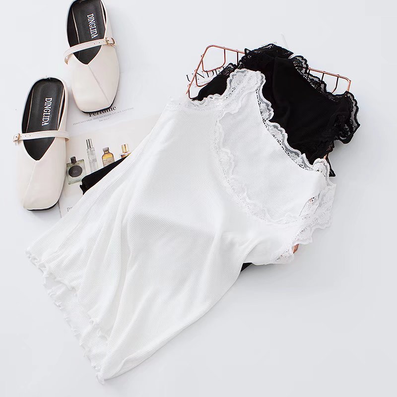 유럽과 미국 스타일 섹시한 향신료 소녀 단색 레이스 실 면 작은 조끼 슬림핏 슬리밍베이스 라이닝