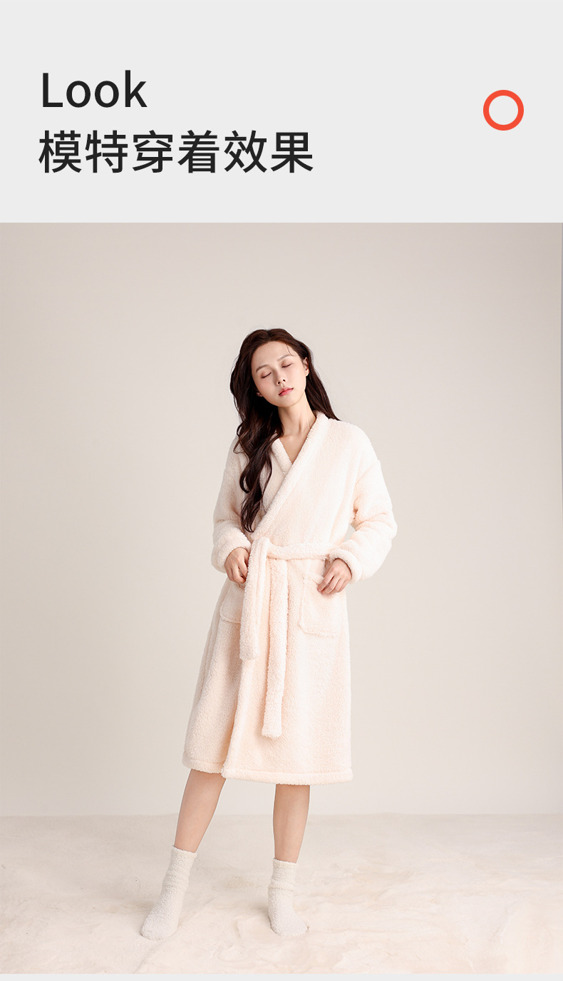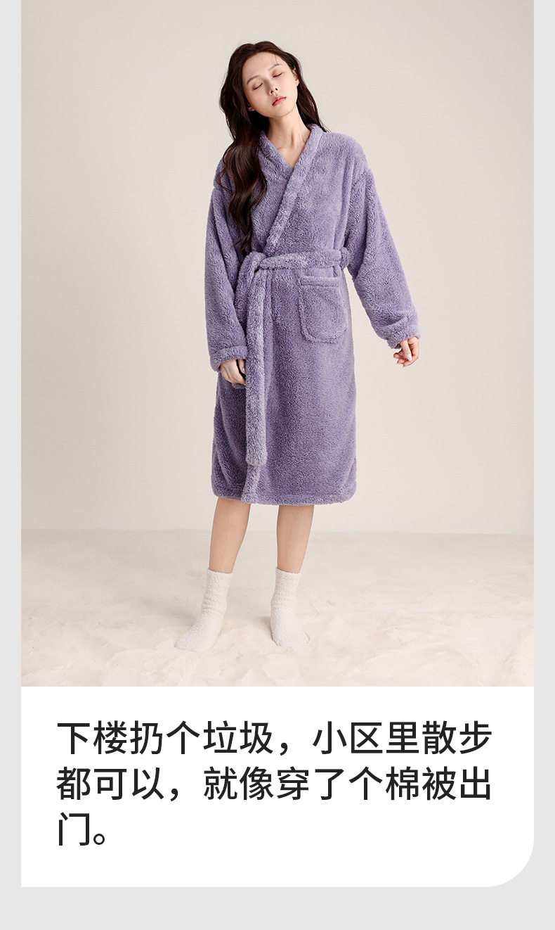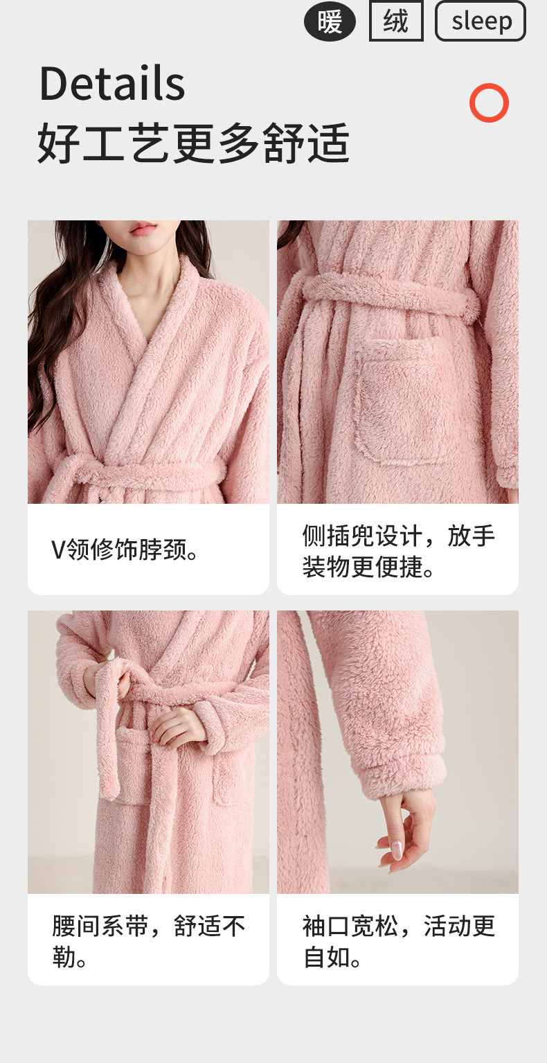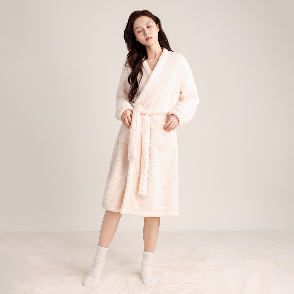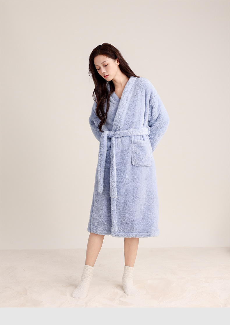 가을 겨울 여성용 잠옷 브이넥 비스듬한 단추 디자인 심플한 홈웨어 플란넬 플러스 벨벳 두꺼운 목욕 가운 따뜻한 롱 잠옷스토어 가기