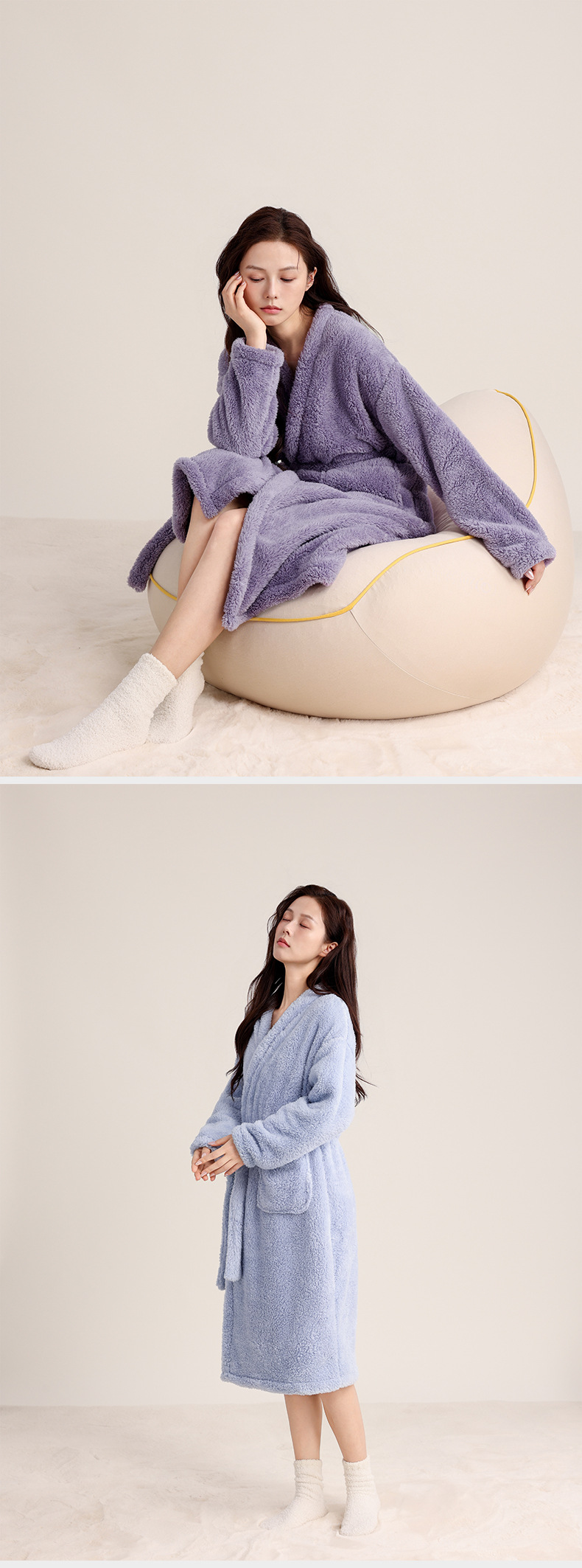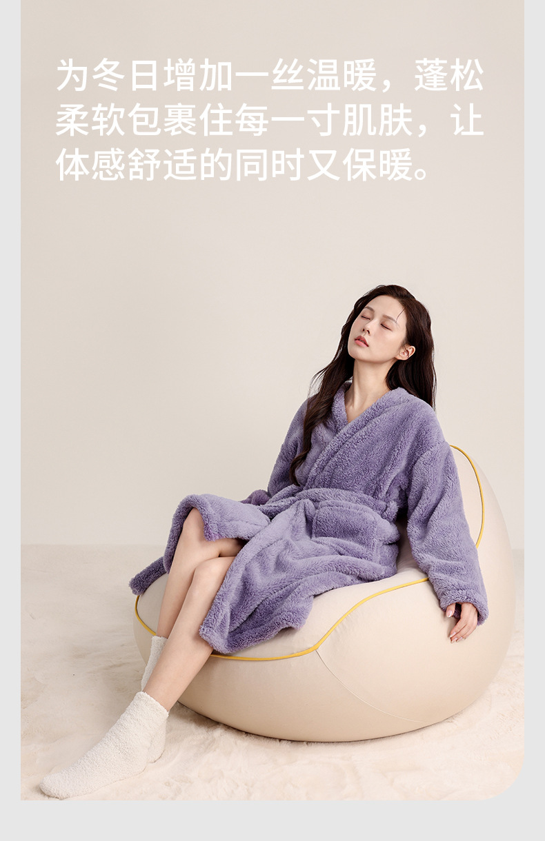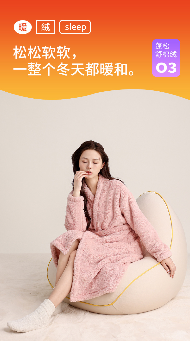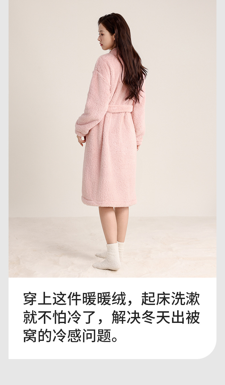 가을 겨울 여성용 잠옷 브이넥 비스듬한 단추 디자인 심플한 홈웨어 플란넬 플러스 벨벳 두꺼운 목욕 가운 따뜻한 롱 잠옷스토어 가기