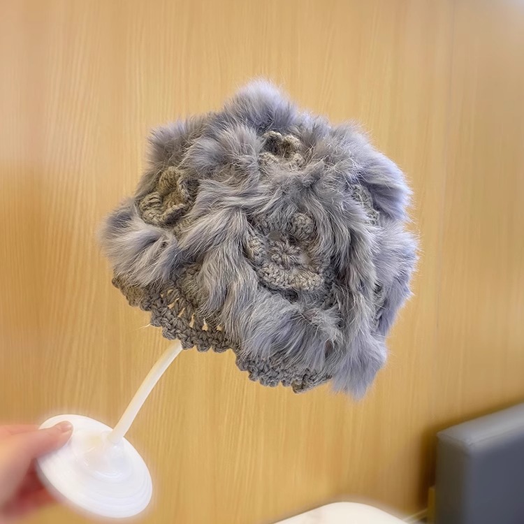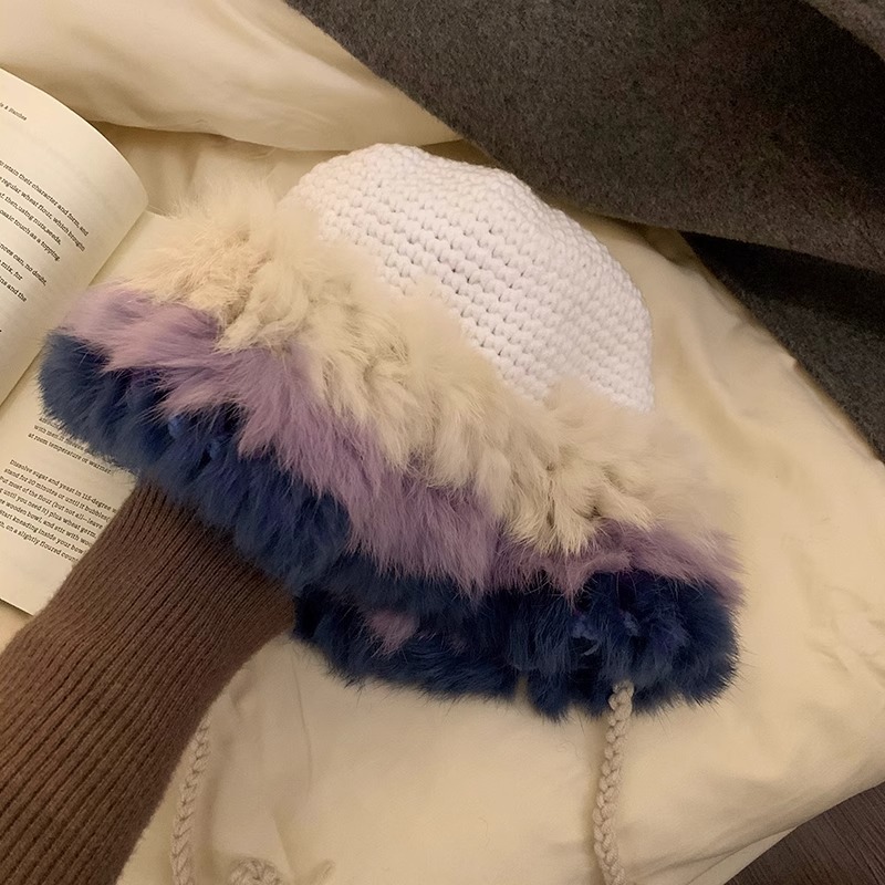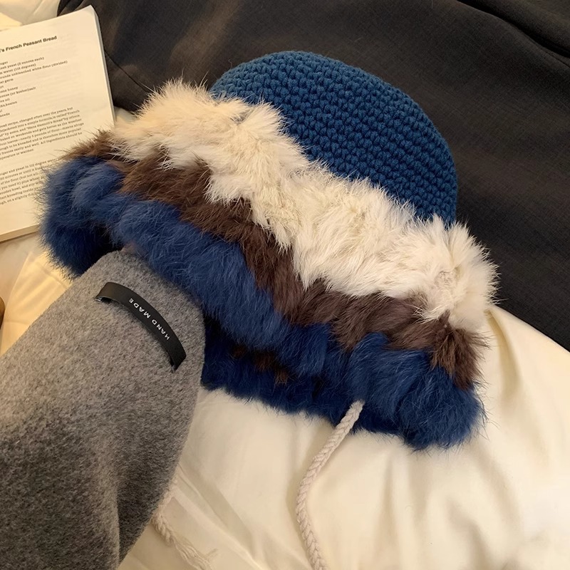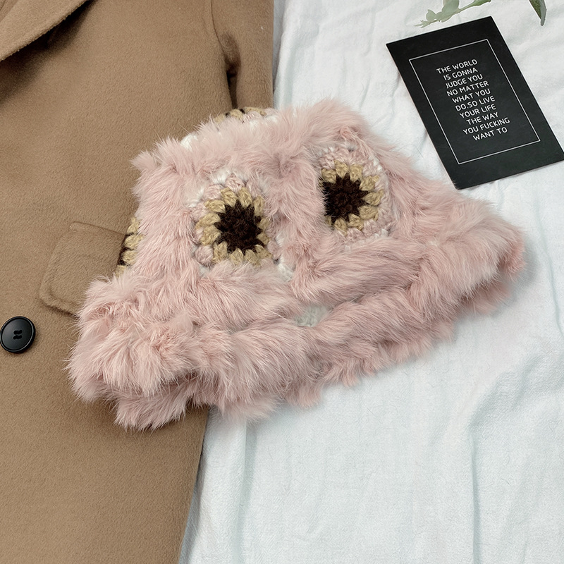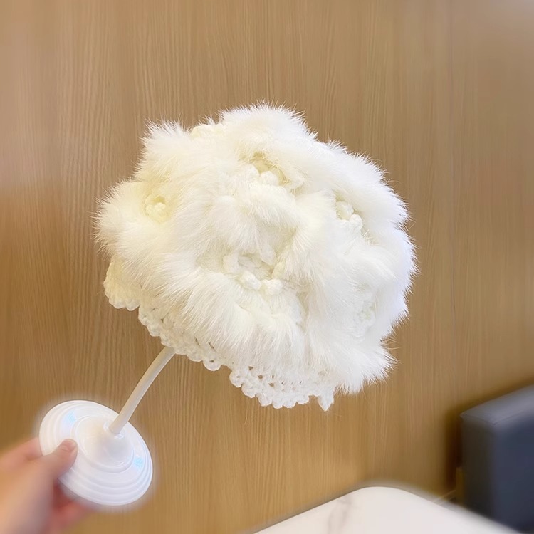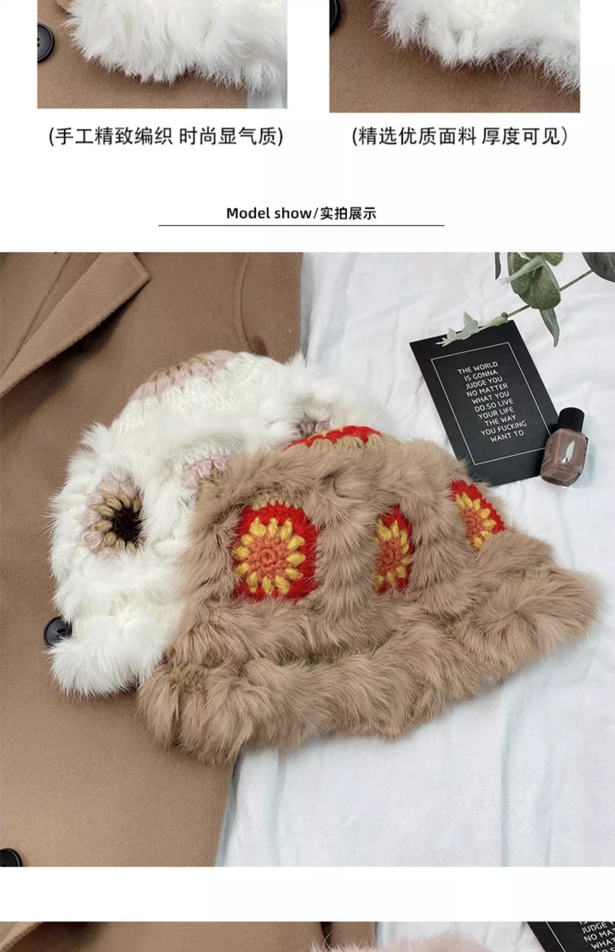 토끼 모피 각성 사자 모자 여성용 2023 년 새로운 가을 겨울 봉제 어부 모자 작은 양동이 모피 분지 모자를 보여주는 모든 경기 얼굴스토어 가기